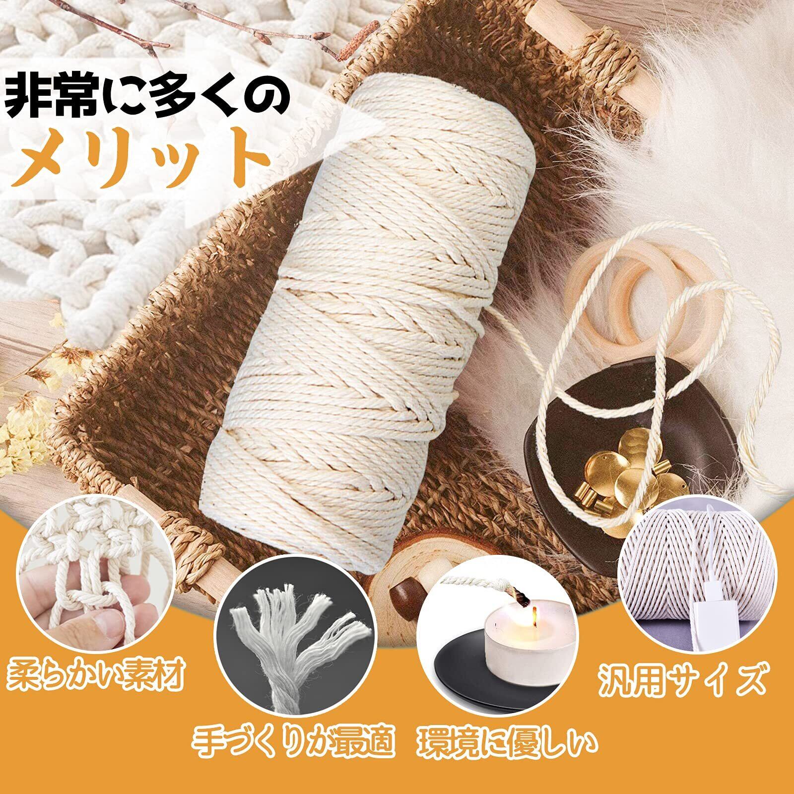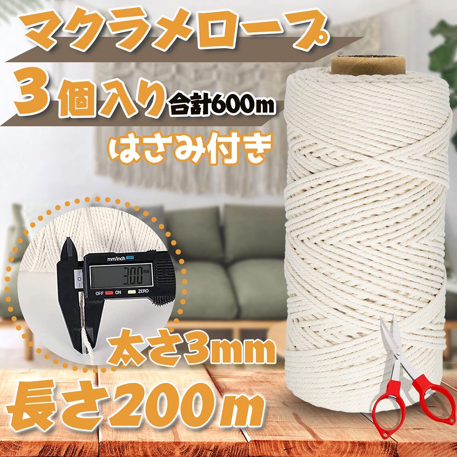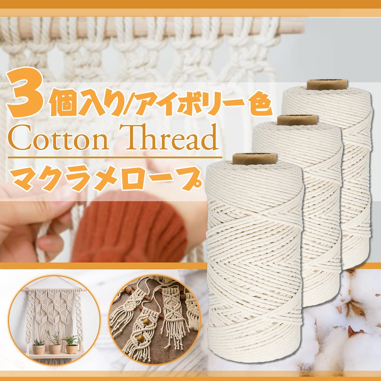 Goreson マクラメ ロープ 紐 糸 手芸紐100%天然染料使用 マクラメ 編み 糸 ナチュラルコットン ひも DIY 手作りコットン糸 直径約3mm (アイボリー, 200m*3)