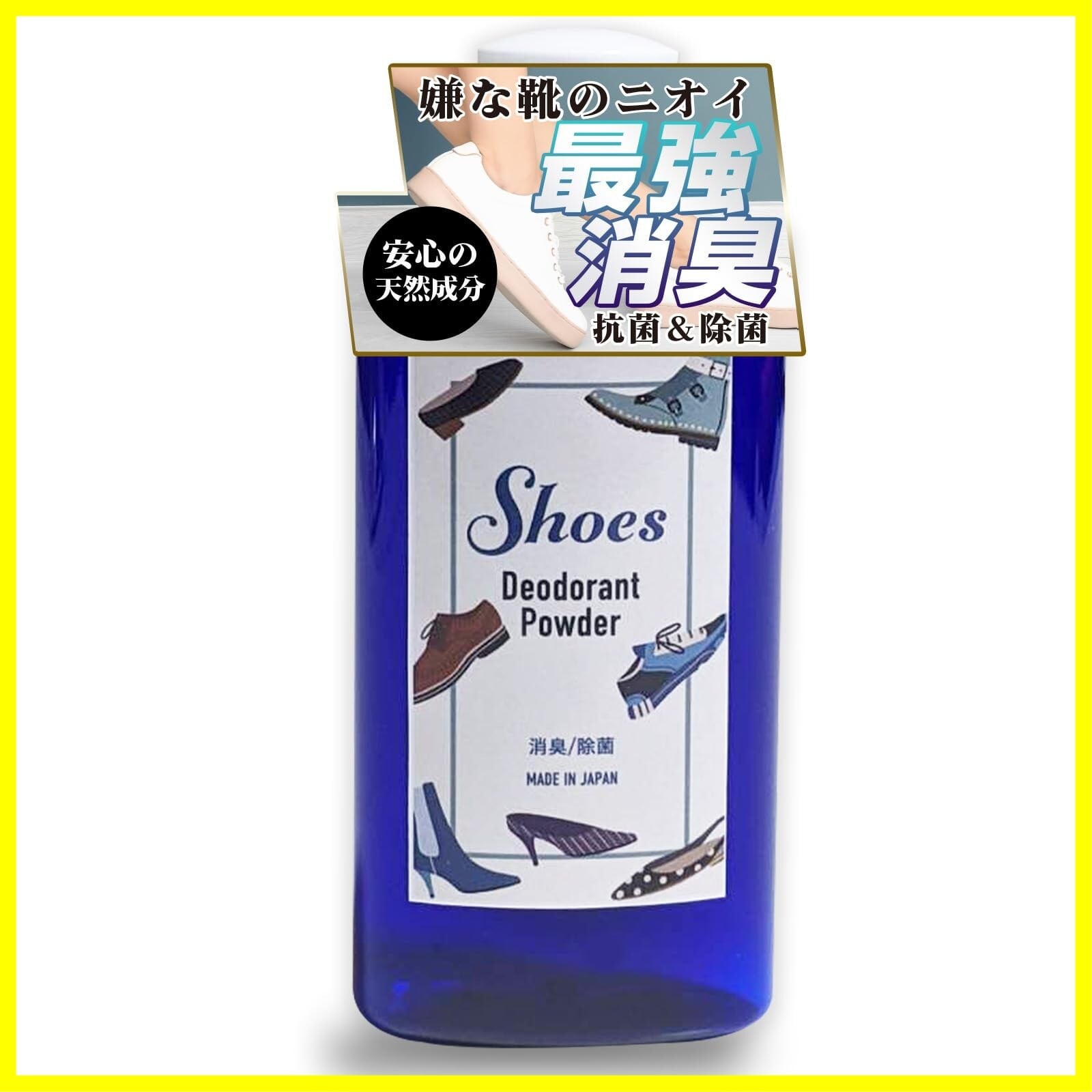 使用上の注意(ケガや事故等が発生する可能性がありますので御使用前に必ず御確認下さい) ・粉を吸ったり、目に入れないようにご注意下さい。目に入った場合は優しく流水で洗い流して下さい。異常を感じた場合には、すぐに使用を中止し、流水で十分に洗い流して医師に相談して下さい。 ・傷やはれなど異常がある際には使用しないで下さい。 ・子供の手の届かない所で保管の上、ご使用下さい。 ・必ず靴下を履いて御使用下さい(薄手のストッキングや素足、素肌では使用しないで下さい)。 ・粉を出す際は軽く押し、粉を出し過ぎないようご注意下さい。粉は靴の中で万遍なく広げて下さい。特につま先やかかと側に粉が集まらないように注意して下さい。 ・1度で大量に使用しないで下さい(多くても振りかける回数は2回に抑えて下さい)。革靴などの粉が馴染みにくい材質のインソールの場合には使用量を少量に抑えて御使用下さい。