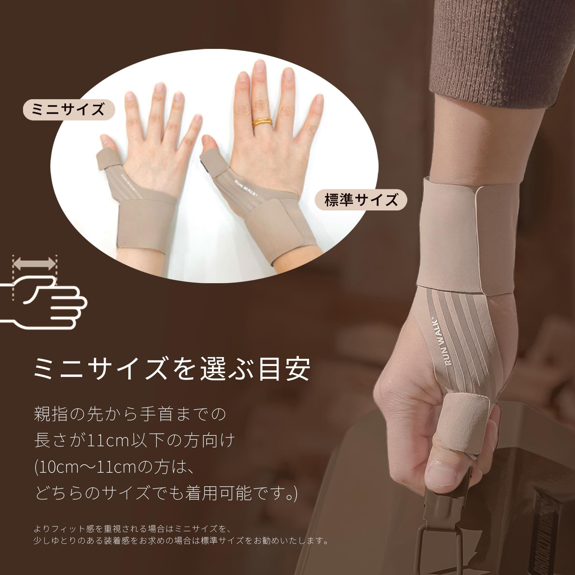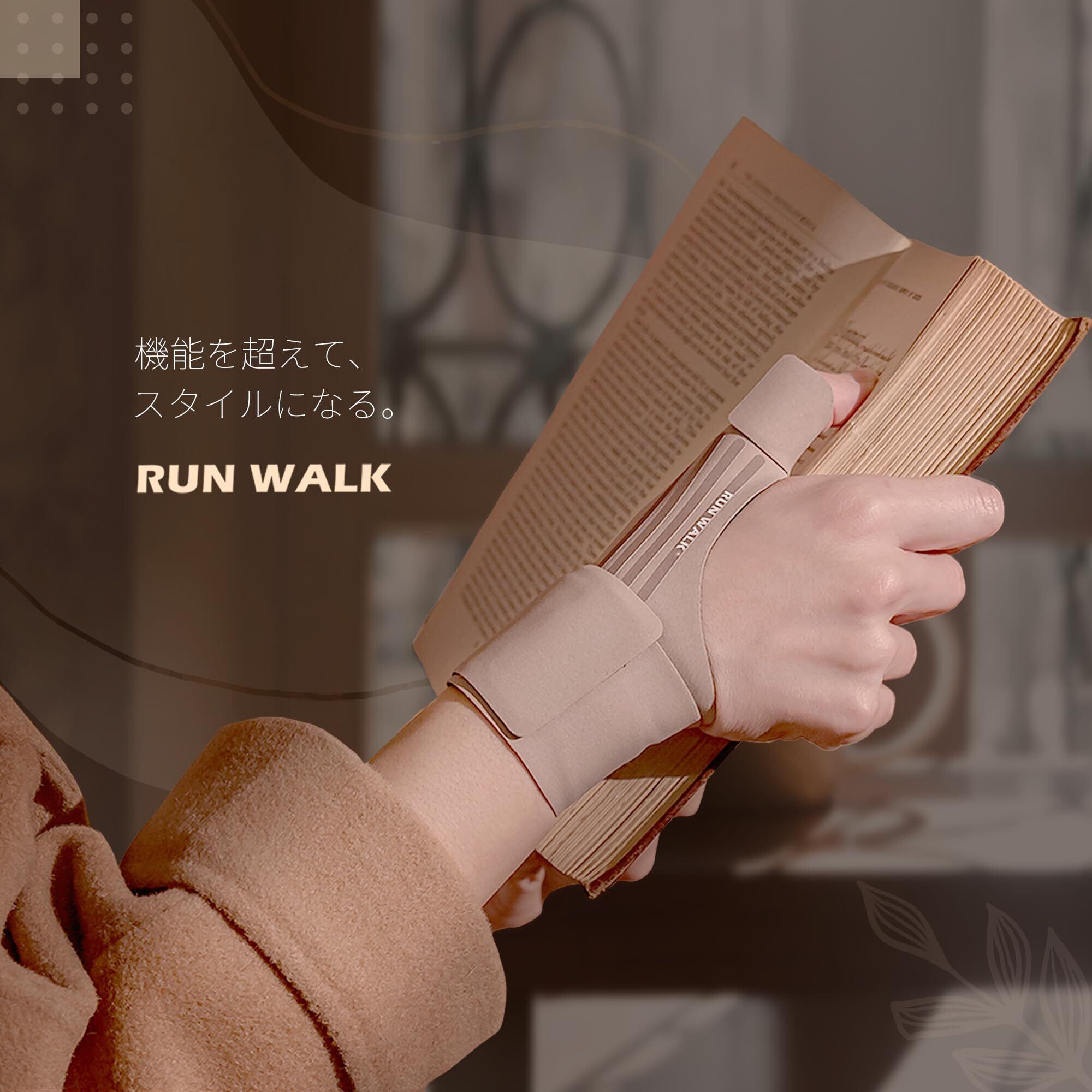 親指 手首 サポーター RUNWALK ソフトテーピング 付け根サポート 薄手3D 添え木タイプ 抗菌 クール素材 (ココアミルクミニ-左手用)
