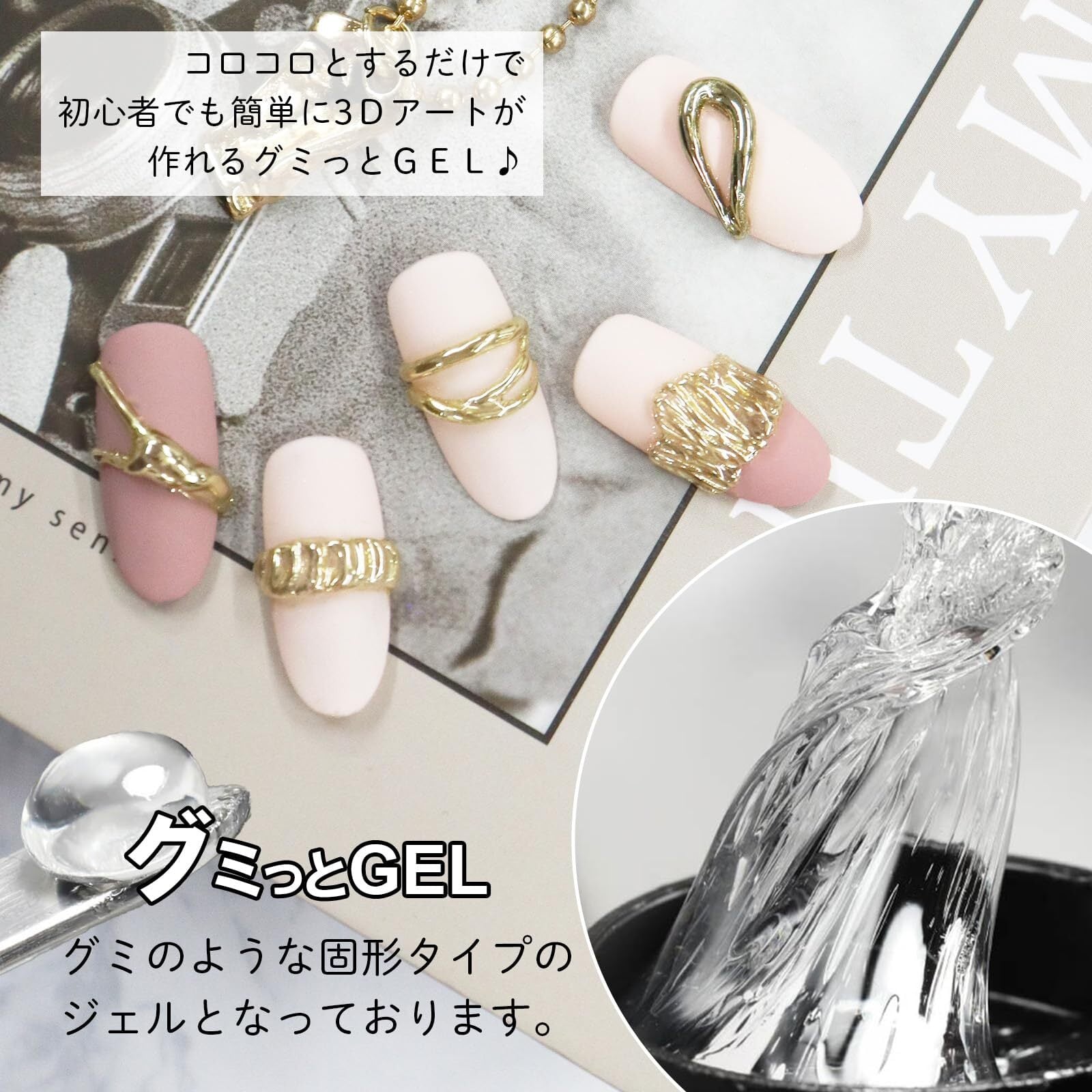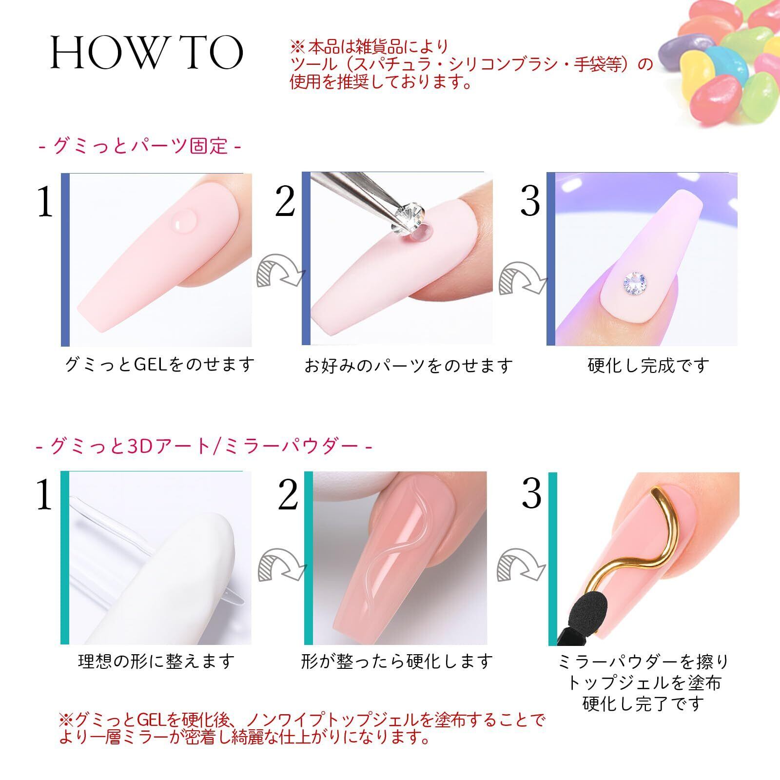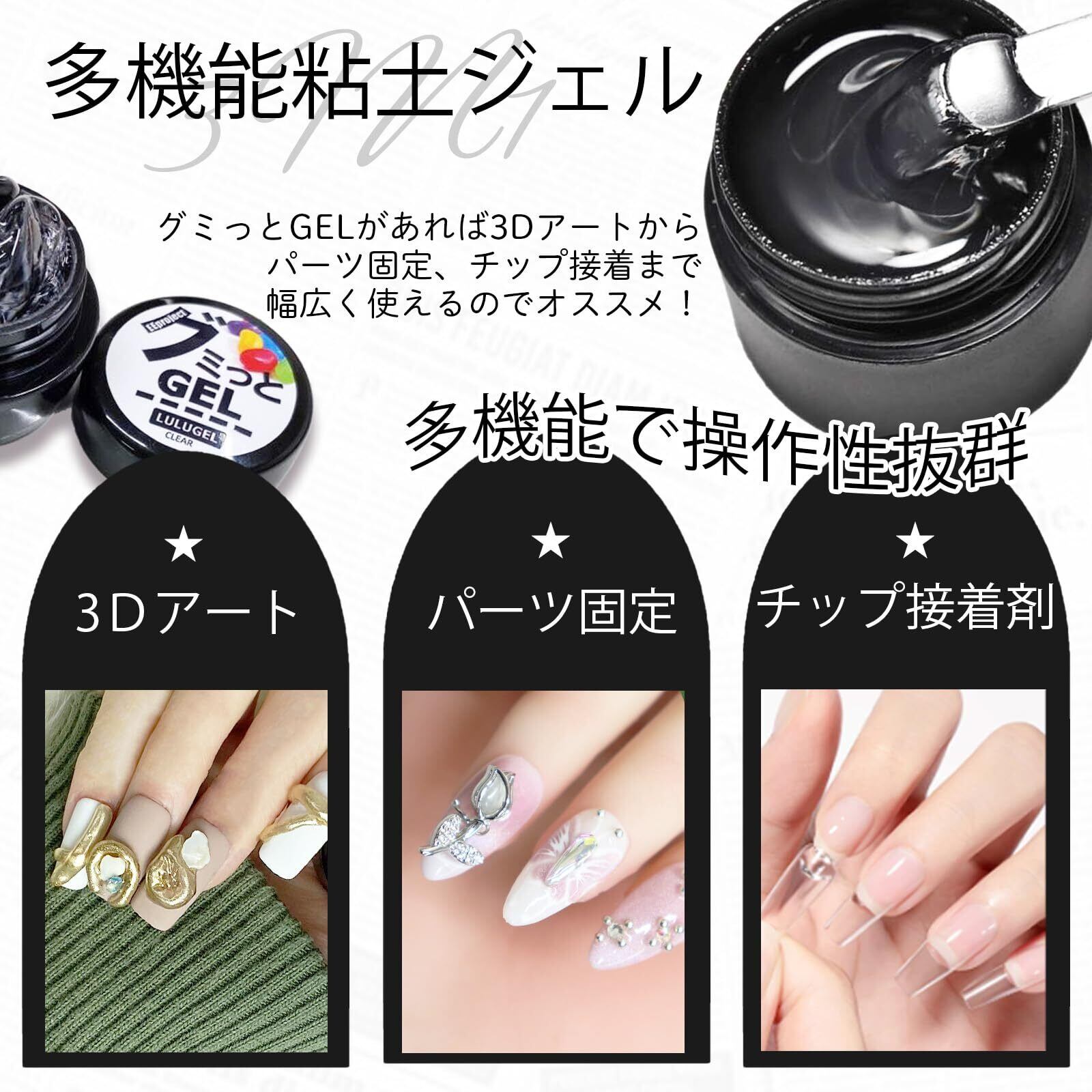 【多機能で操作性抜群】粘土のように造形しやすく、グミのような固形タイプのジェルコロコロするだけで簡単に3Dアートが作れます。パーツ固定、ネイルチップ接着剤としても優秀なのでいろんな場面で活躍します。