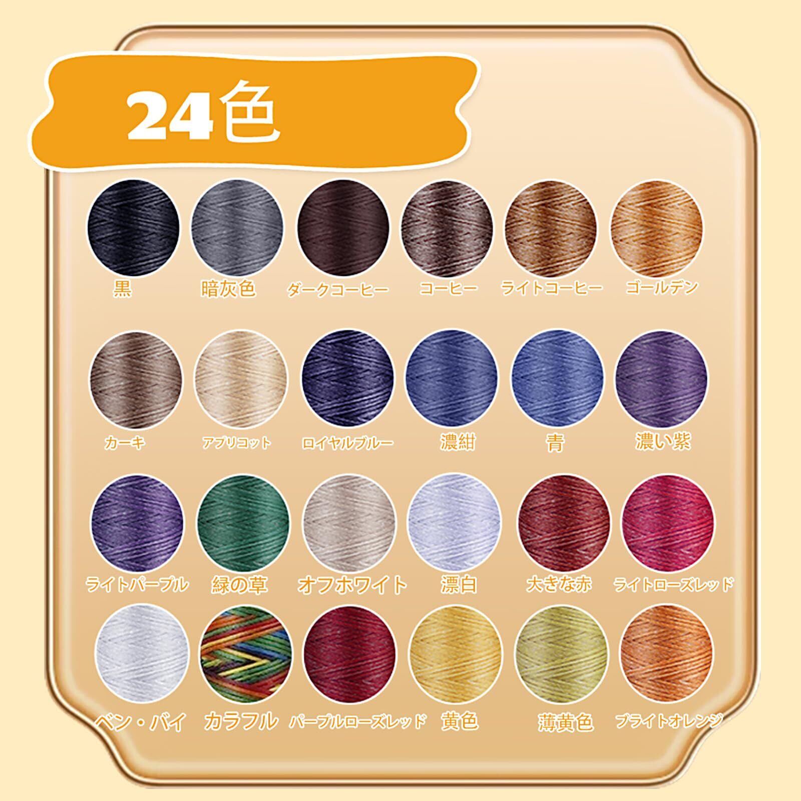 高品質なポリエステル:ロウ引き糸24色セット。暗めな色から明るい色まで幅広くお使い頂けます。