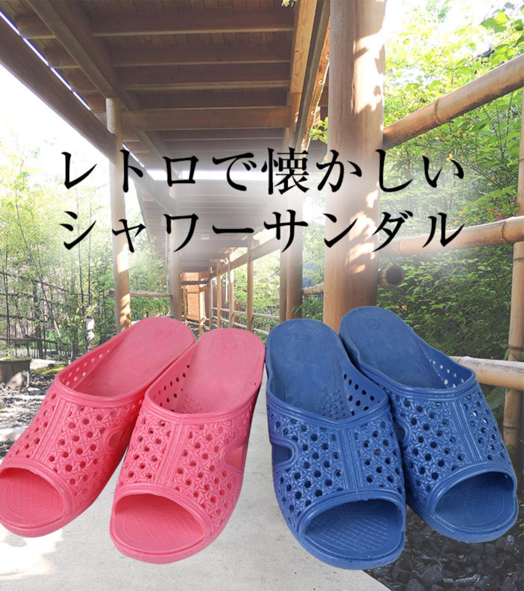 サイズ:レディース M 22-23cm。 タイプ:前開きタイプ。 素材:合成ゴム。 どこかで見たことがある、昔ながらの レトロで懐かしい シャワーサンダル。