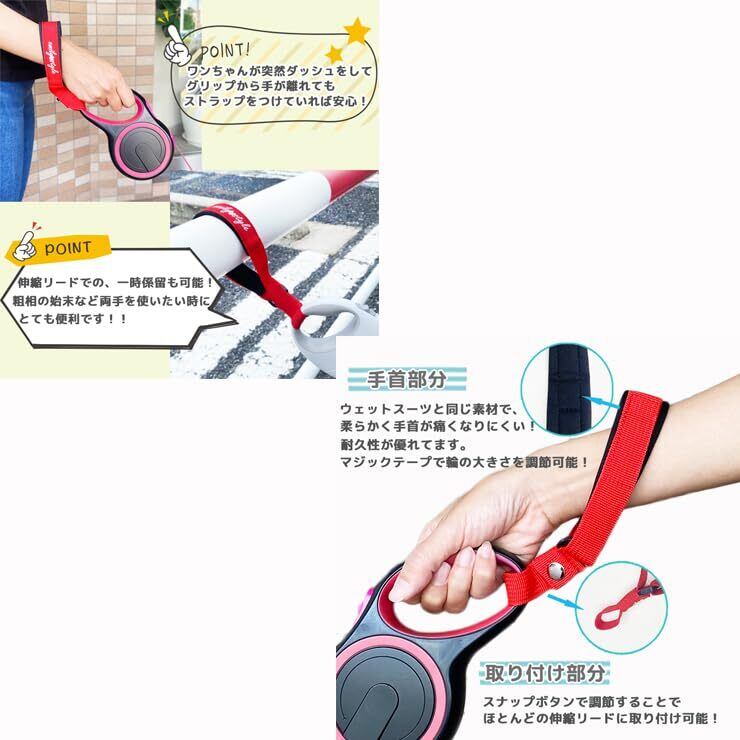 NEW 伸縮リードストラップ フリーハンドストラップ 柔らか 痛くなりにくい 痛くない やわらか 落下防止 伸縮リード用 散歩 犬 犬用 両手が使える フリーハンド 係留 T2 エミリースタイル emilystyle(レッド)