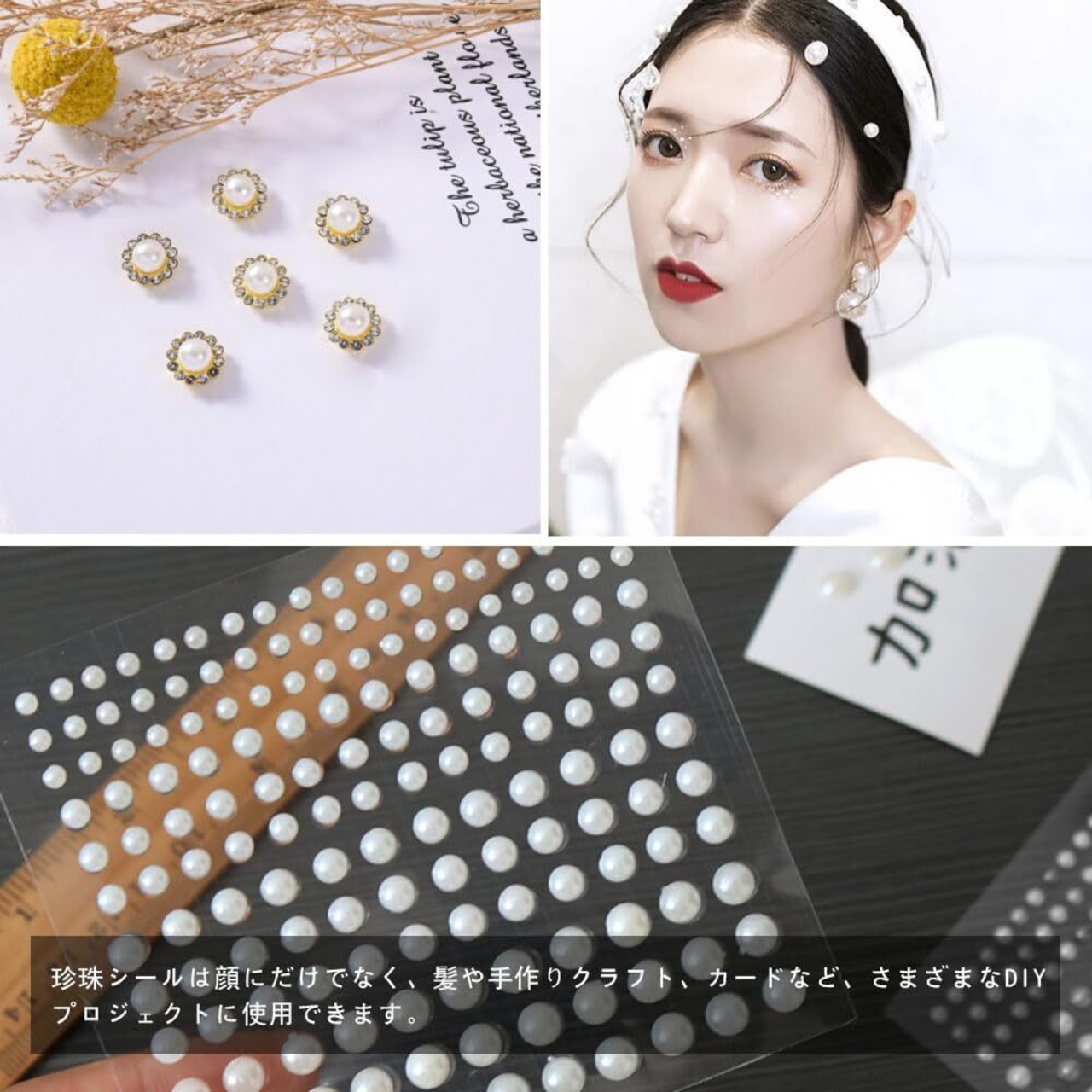 高品質な材料:アクリル製で、上品な輝きを持つ真珠のようなパール素材。脸に貼るためのデコレーションとしても優れた耐久性を提供します。