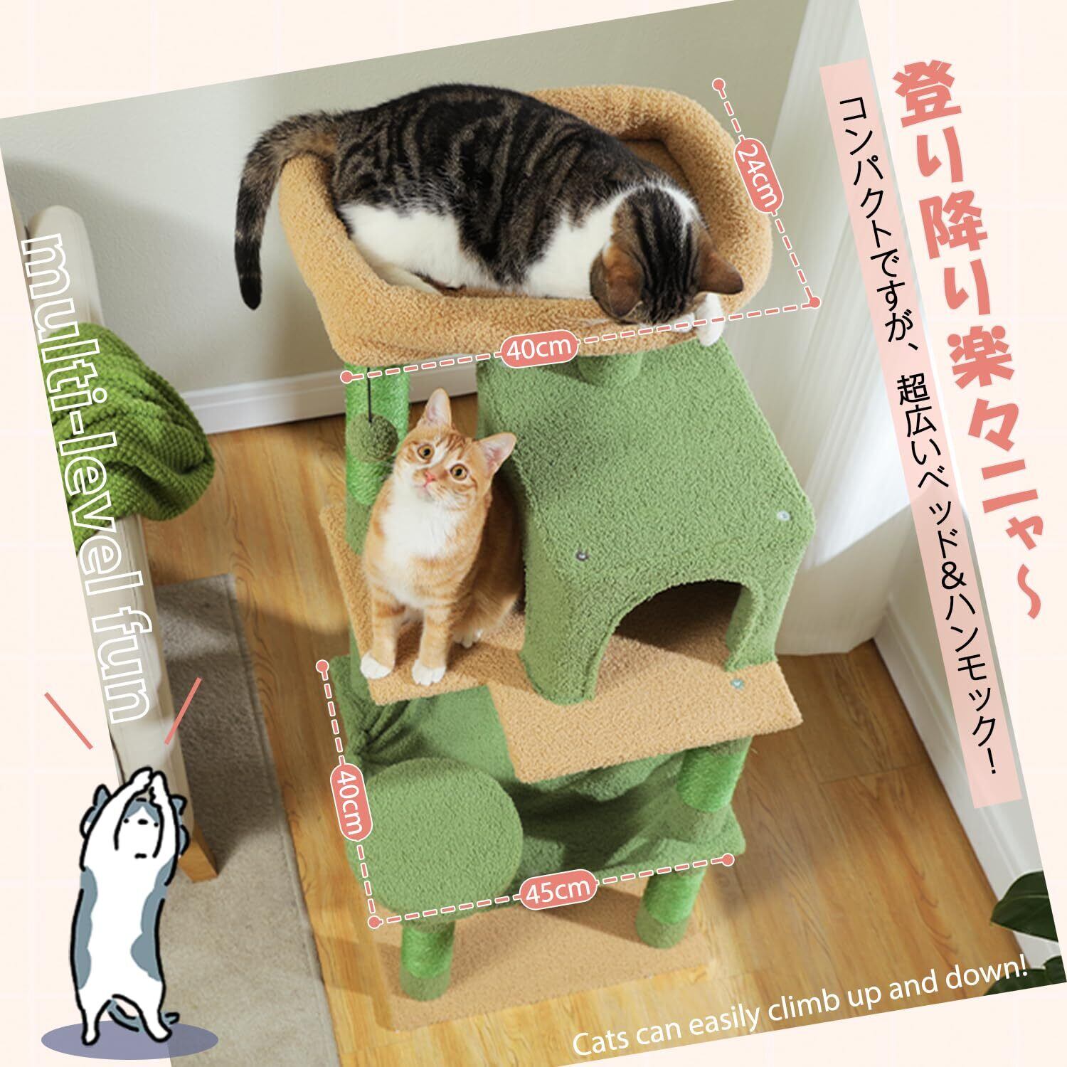 【多頭飼い】休憩できる場所はたくさんあるので、多頭飼いの場合でもご使用できます!可愛い猫ちゃんたちがここで遊んだり、寝たりして、見るだけでも楽しいo(^o^)o
