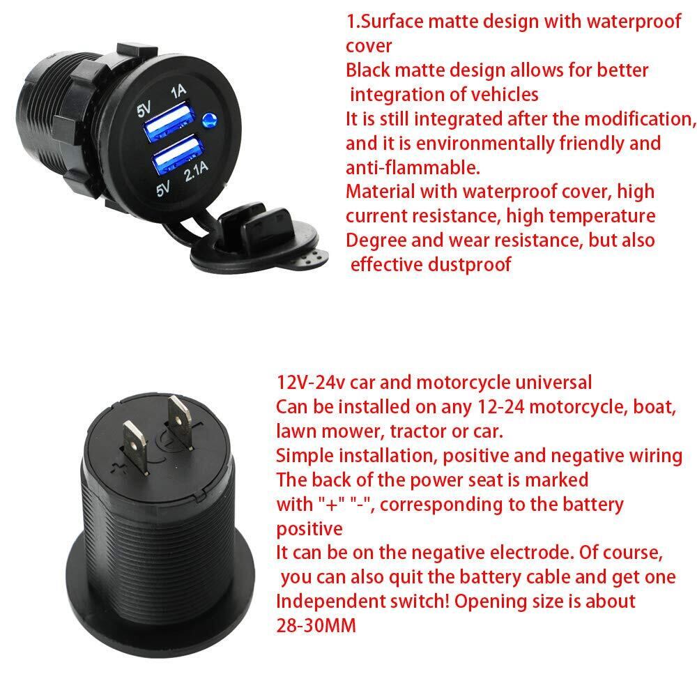 CESFONJERユニバーサル防水デュアルUSB充電器ソケット電源アウトレット、12V-24V出力5V 2.1A LED充電器付き高速充電器(ブルー)マリンボートマリンバイク