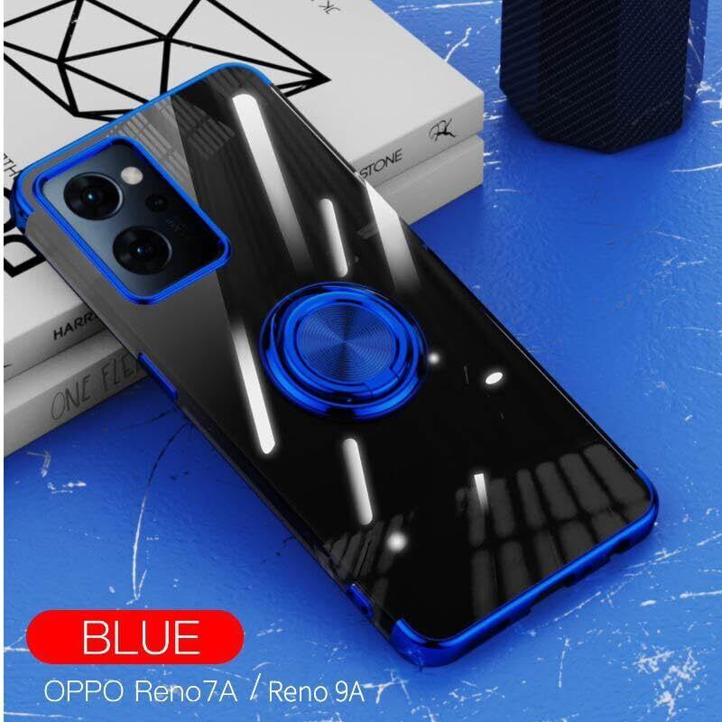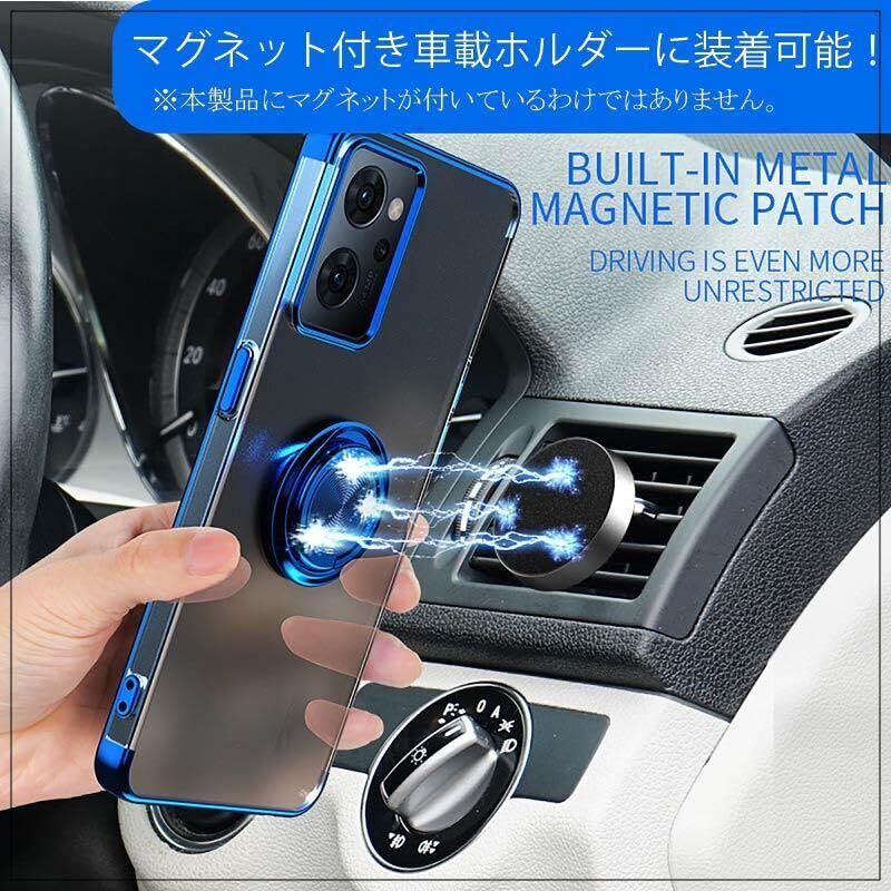 OPPO Reno7 A Reno9 A Reno7A Reno9A 対応 ケース ソフトケース リング付き 車載ホルダー対応 360°回転 スタンド機能 TPU クリア 耐衝撃 衝撃吸収 ケース カバー 保護ケース サイドメッキ加工 ストラップホール付き クリアケース スマホケース スマホカバー ブルー 互換性あり