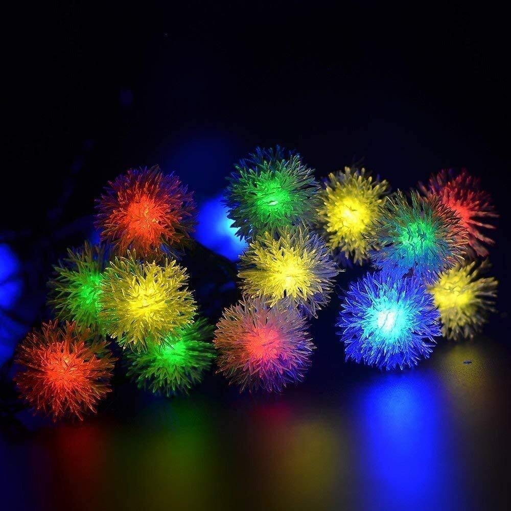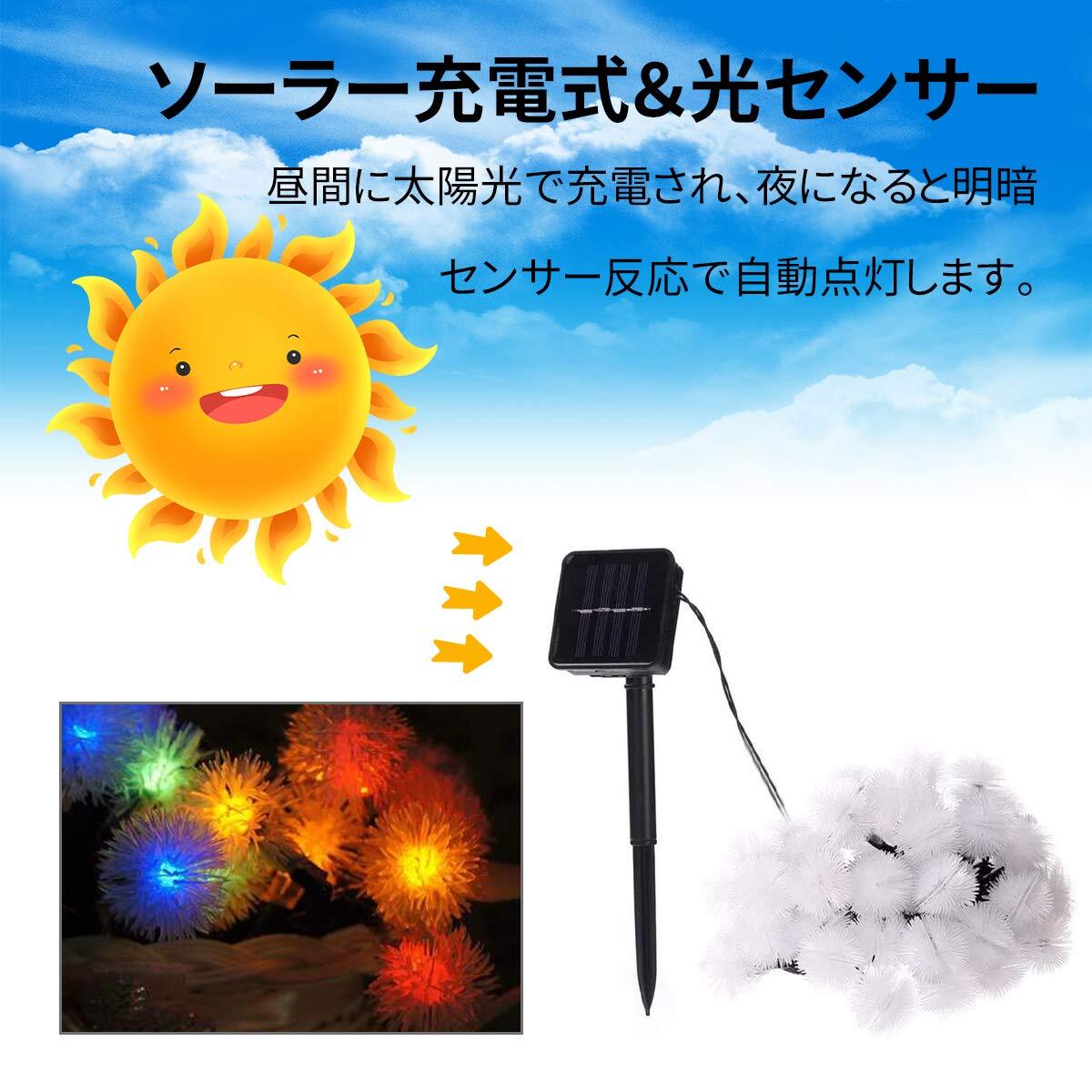 【商品仕様】ソーラーイルミネーションライト、LED間隔15cm、合計30個電球 、全長6.5M、カラフル(電球色)、8点灯モード。