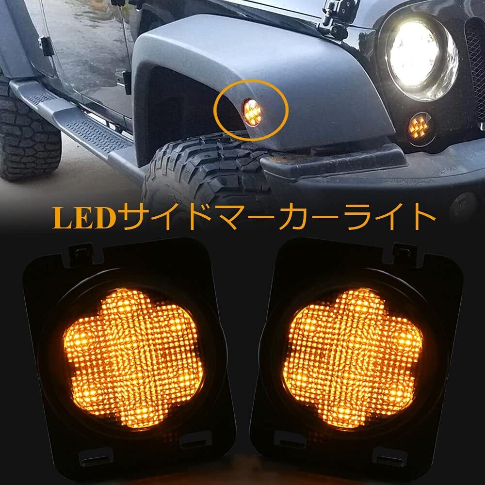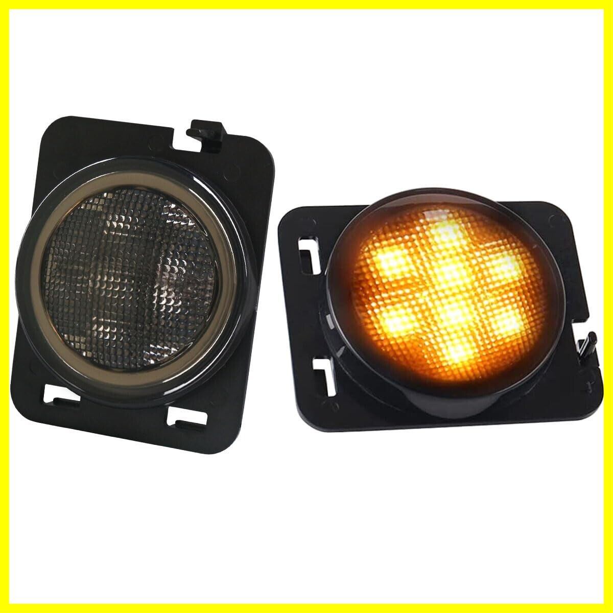 サイドマーカー フロントフェンダーウインカー パーキングライト 琥珀色LED スモークレンズ 左右2個セット ジープラングラーJK JKU2007-2017に適用