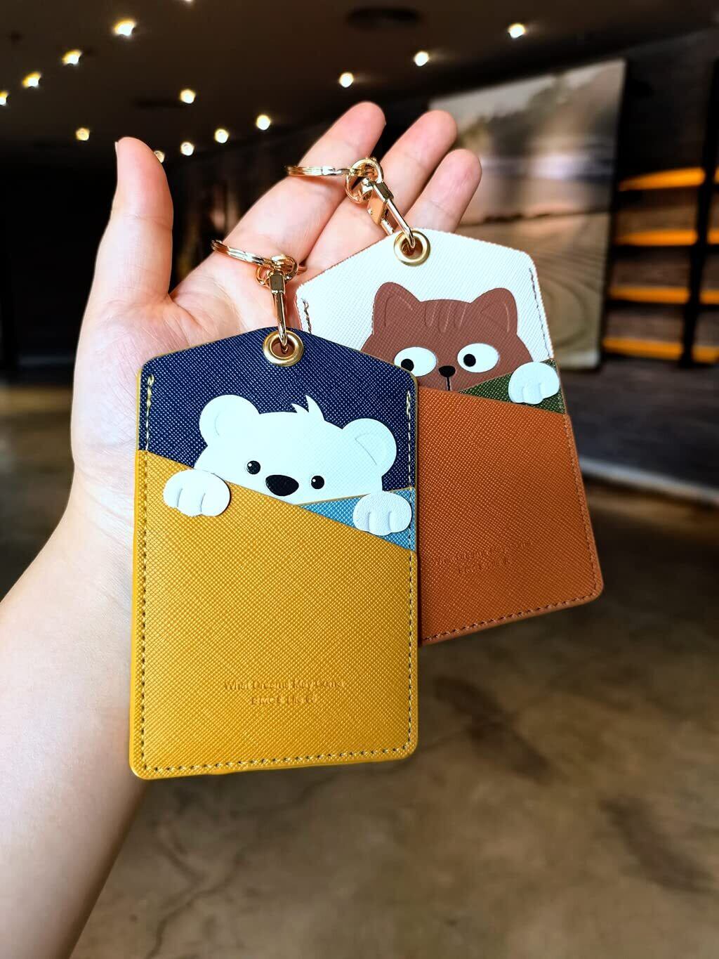 かわいいデザイン「縦型 アニマル パスケース キャラクター」ポケットからひょっこり顔を覗かせる動物たちがとてもキュート、見る触るたびに癒され!可愛いパスケース レディース バッグチャーム としてもお薦め