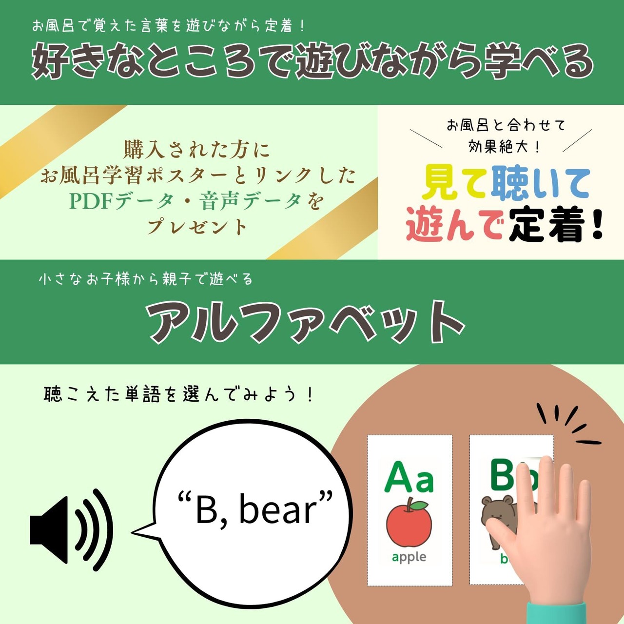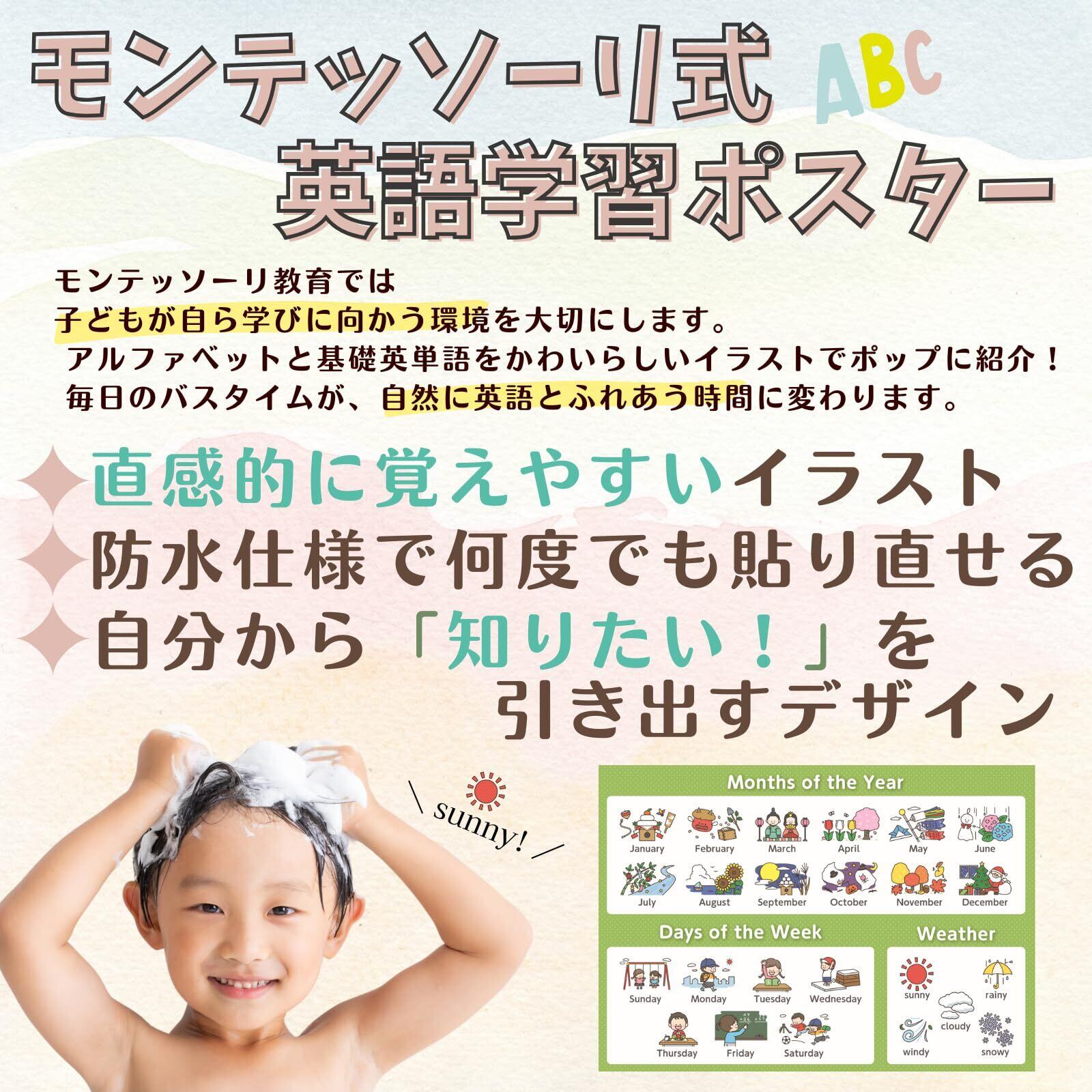 【現役塾講師監修】 お風呂ポスター モンテッソーリ 知育 見て聞いて遊んで定着 音声データ付 2枚セット B3サイズ (アルファベット・英語)