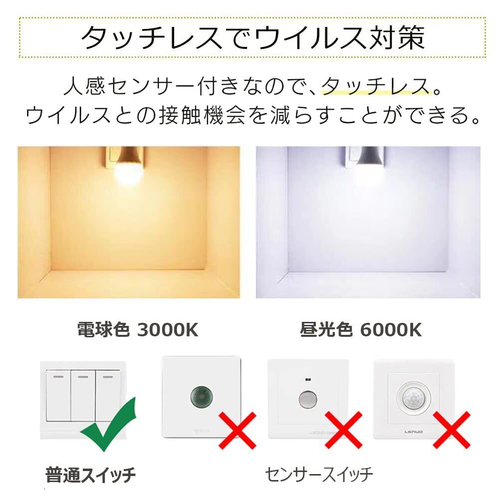 【E17 人感センサーライト】検知範囲:直径約3-5m、検知角度:120°。人の動きを検知すると、自動で点灯します。動きを検知しないと、約30秒後自動で消灯します。(動きを検知し続けると、点灯時間が延長します。)便利に操作でき、無駄な電力を消費しません。