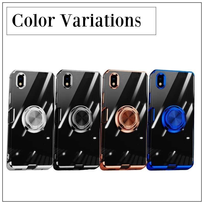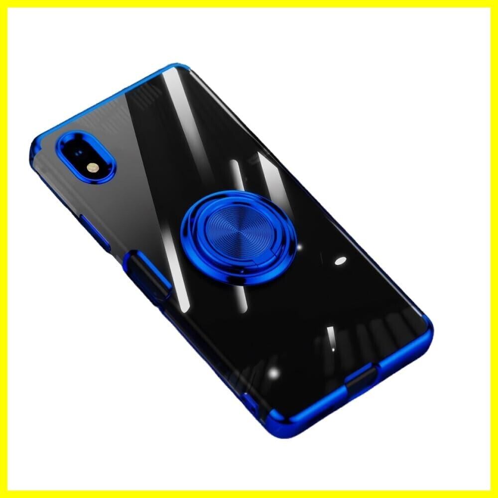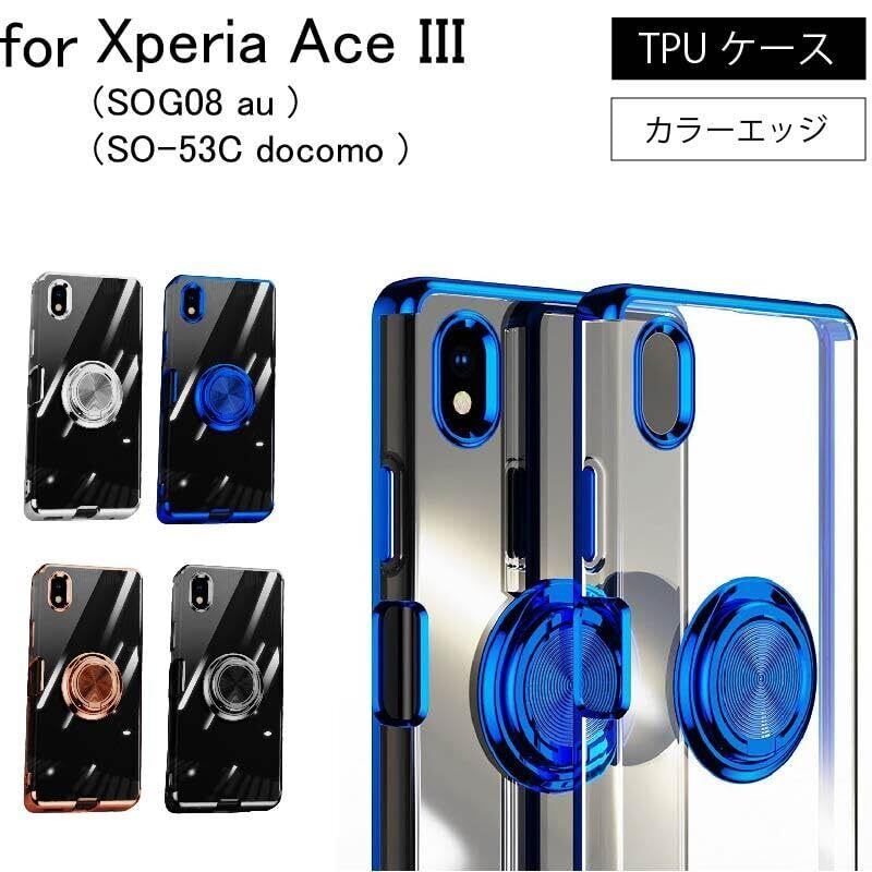 Xperia Ace III SOG08 SO-53C 用 ケース ソフトケース リング付 車載ホルダー用 360°回転 スタンド機能 TPU クリア 耐衝撃 衝撃吸収 ケース カバー 保護ケース サイドメッキ加工 クリアケース スマホケース スマホカバー ブルー 互換性あり