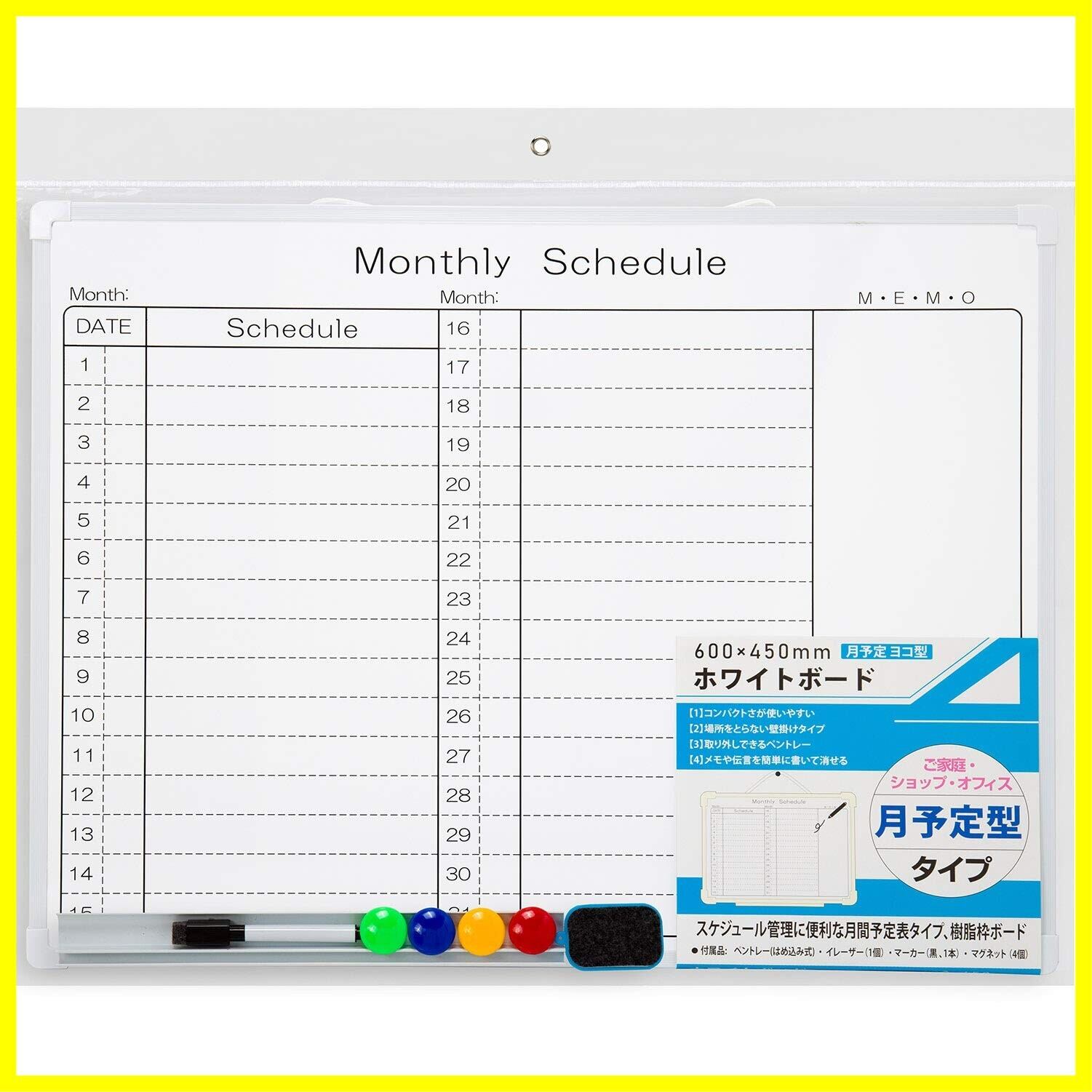 サンケーキコム ホワイトボード 樹脂枠 月予定 ヨコ型 600mm×450mm WB-6045-MY