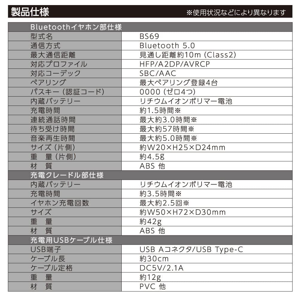 多摩電子工業 すみっコぐらし SX-BS69W-N 完全ワイヤレスイヤホン ねこ Bluetooth5.0 マイク付き 通話 音楽再生時間最大5時間、連続通話3時間、待ち受け時間最大57時間、ペアリング登録最大4台
