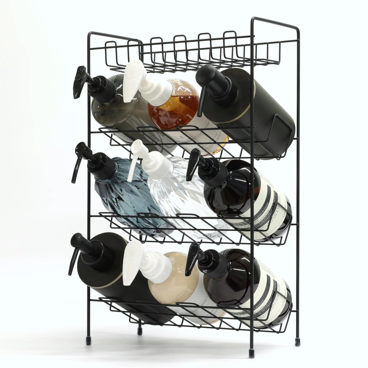 Umemigusa バスルームラック ステンレス 4段 ボトル最大9本収納 サビに強い 錆びにくい 丈夫 省スペース スリム 浴室用ラック お風呂 洗面台 キッチン 小物 収納 (ブラック4段)