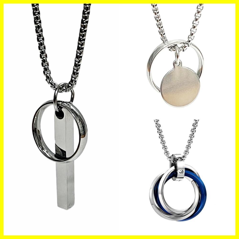 [YAHANE] ネックレス メンズ ペンダント ダブルリング 3連リング シンプル ステンレス アクセサリー シルバー ブルー ブラック ゴールド トップ ジュエリー アレルギーフリー 防水