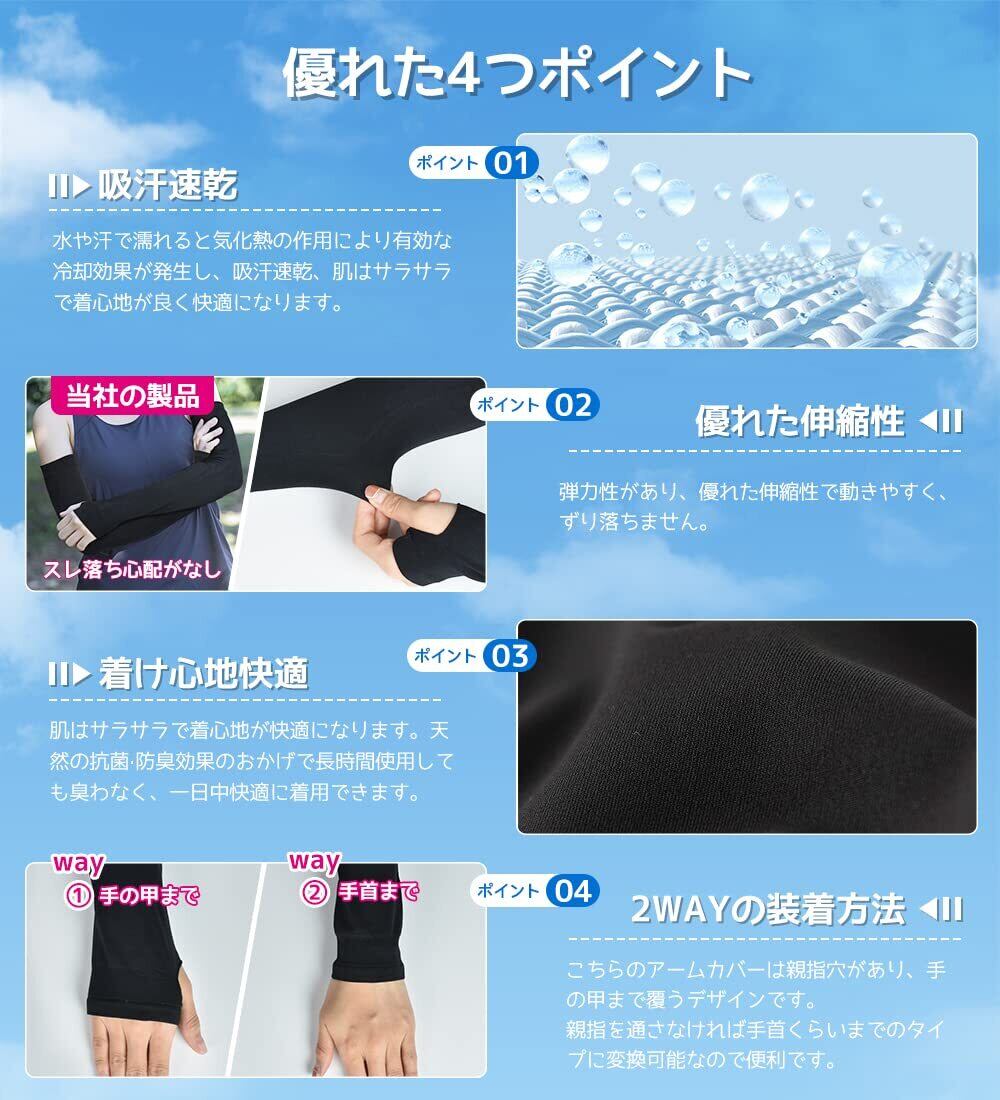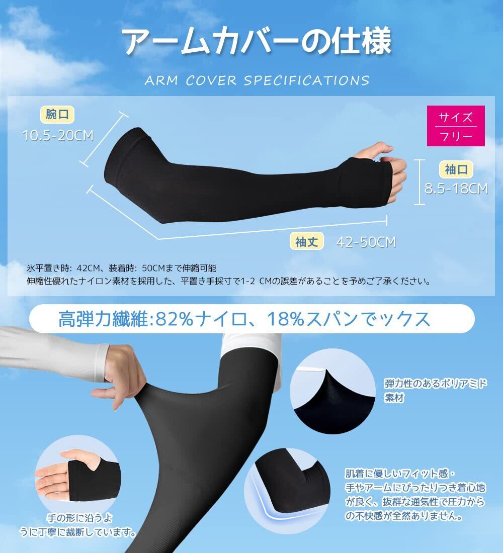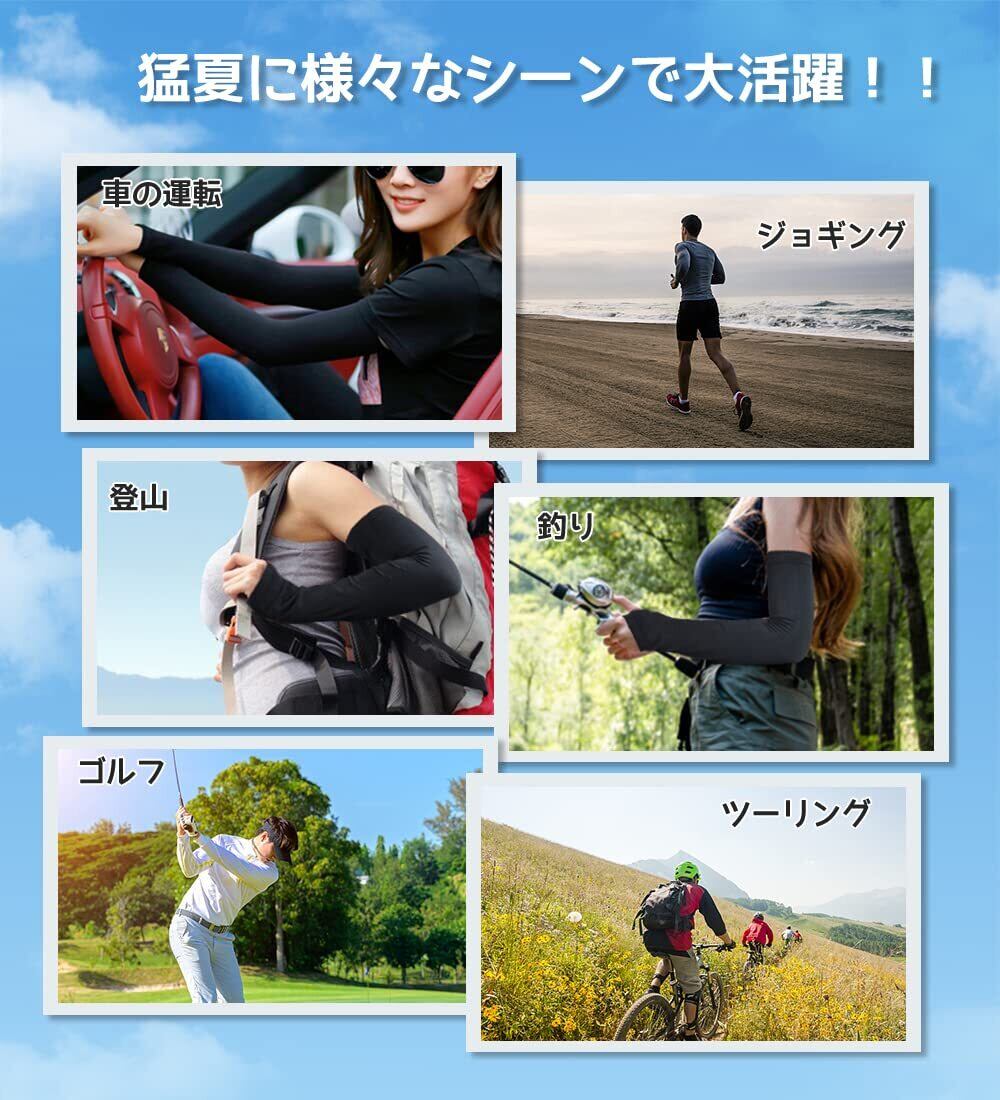 ❄【アームカバー 日焼け防止】UVカット率99.9%以上!UVカット率の最高ランクUPF50+認定品、紫外線を強力にカットする繊維素材を採用しています。暑い日に、日に焼けて肌が赤になった、敏感です。日焼け止めクリームは肌によくありません、この状況を逃げるために、このアームカバーが必要です。もっと楽しみに過ごせます!