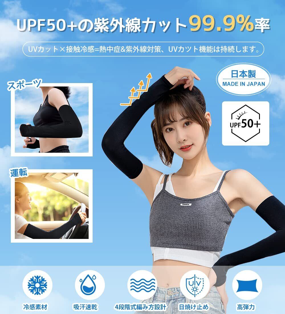 [SOHAPI] アームカバー 日焼け防止 レディース メンズ 【日本製】 夏 接触冷感−5℃ UPF50・UVカット率99.9% アームガード 腕カバー アームスリーブ ひんやり 紫外線対策 吸汗速乾 抗菌防臭 滑り止め 通気性 伸縮性 (両腕2枚組)