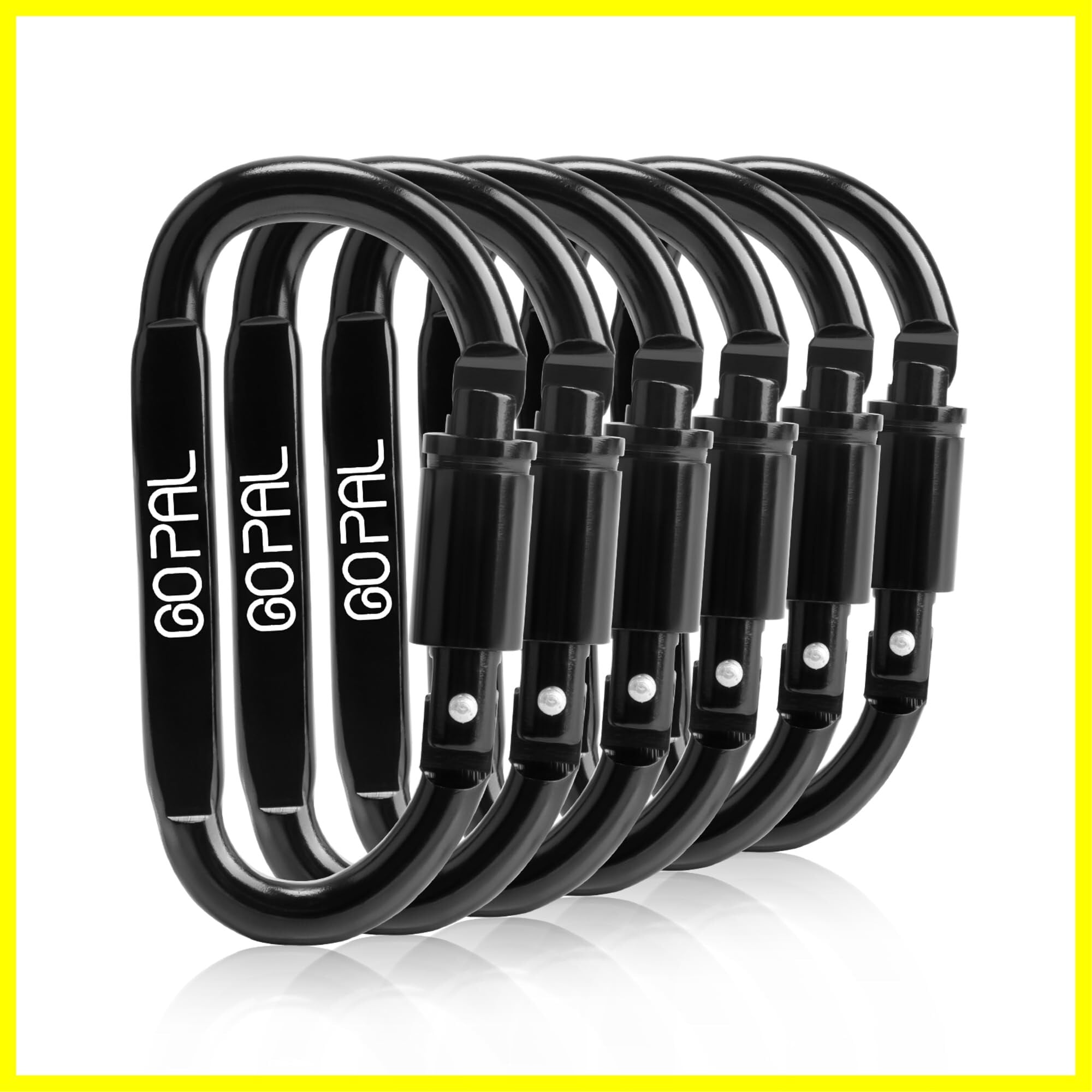 Go Pal GP03 ロックカラビナ おしゃれ 大型カラビナ ネジロック D型 軽量 ブラック オートロックゲート(ツイストロック) 6個入り