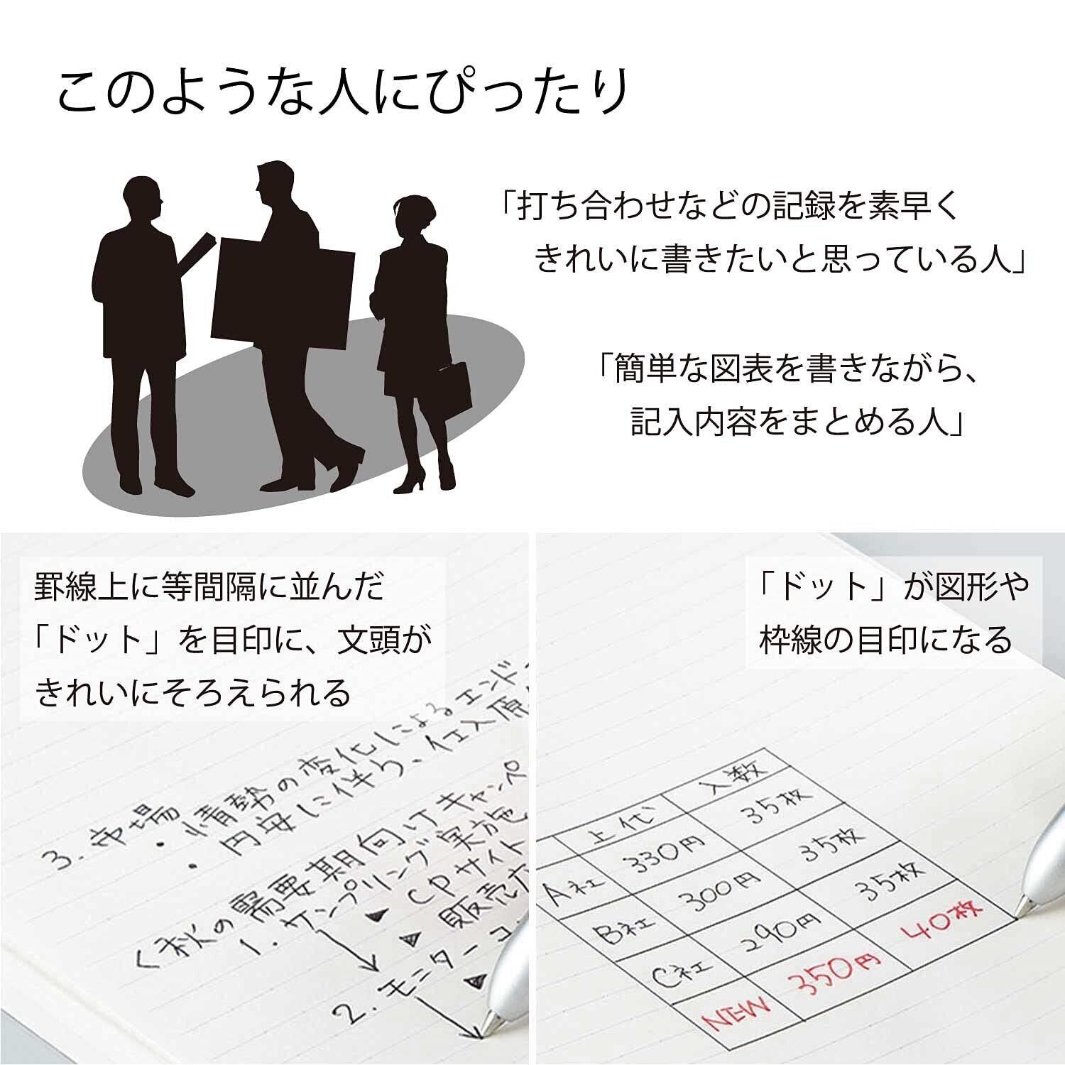 罫線上に等間隔に並んだドットを活用することで、ノートを美しく書くことができ、書いた後見返しやすく、効率的に学習することができる。