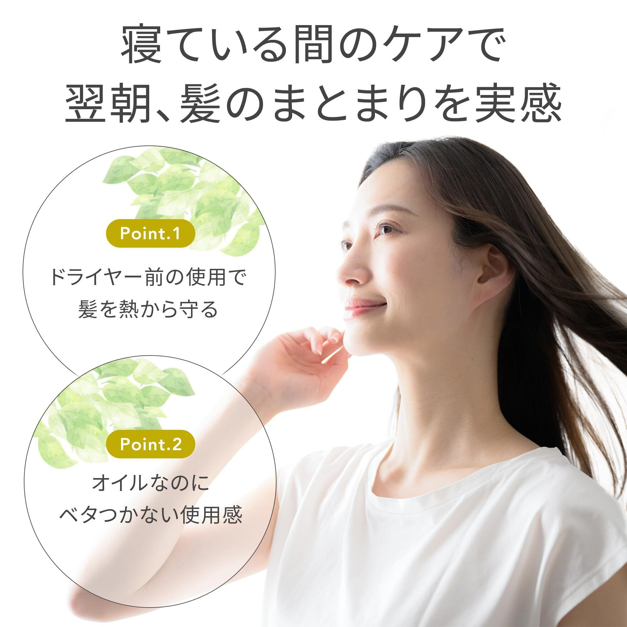 【商品の特徴】しっとり艶やか、手触りなめらかな髪へ導く髪の美容液。髪が太くまとまりにくい方・髪のツヤがなくパサつく方にオススメな洗い流さないヘアトリートメントです。
