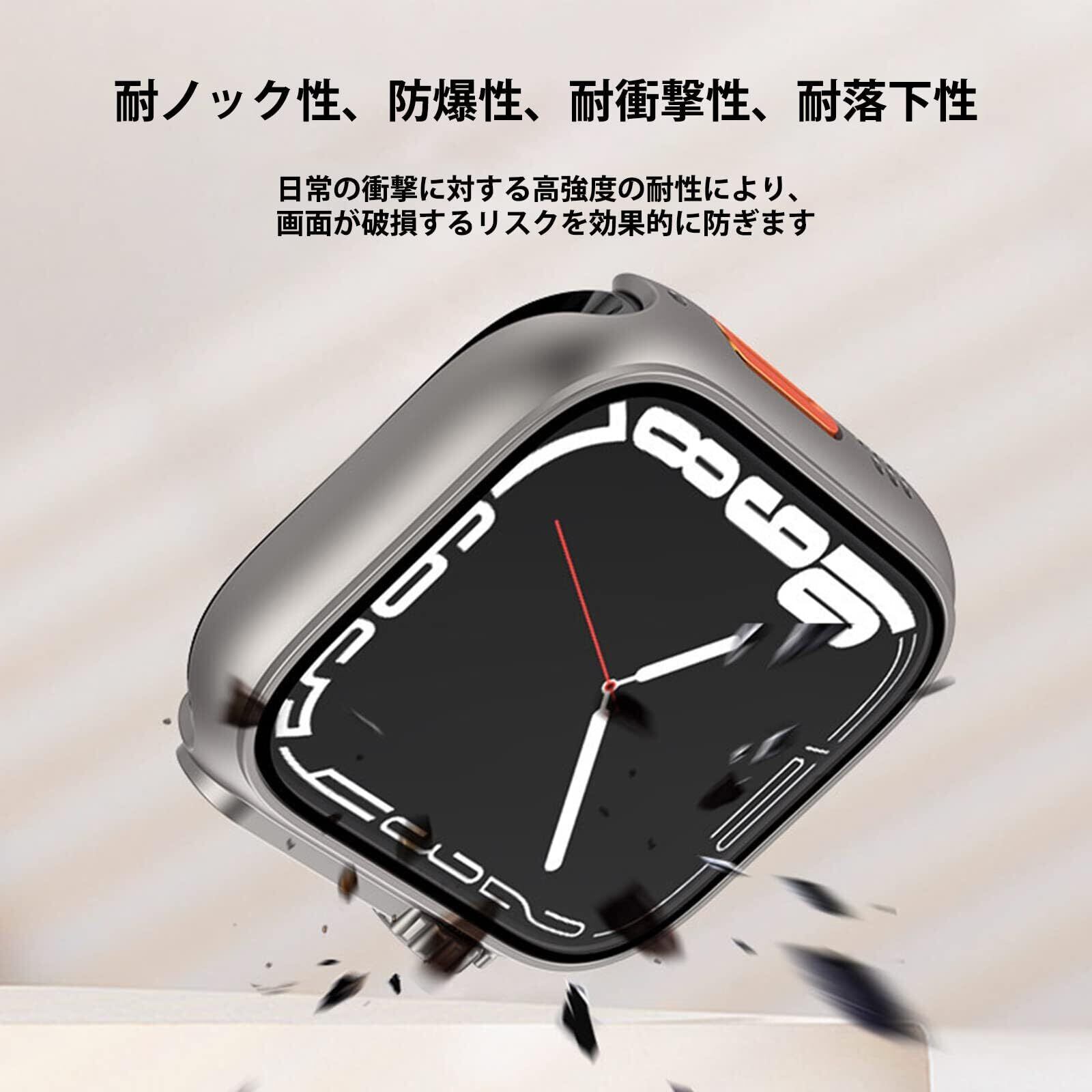 YAODLE Apple Watch ケース シリーズ 9/8/7 45mm と互換性があり 数秒で Ultra シリーズの外観に変換できます アップルウォッチ カバー 日本旭硝子材 キズ防止 軽量 強化ガラス アップルウォッチ 9/8/7 対応(45mm,シルバー)