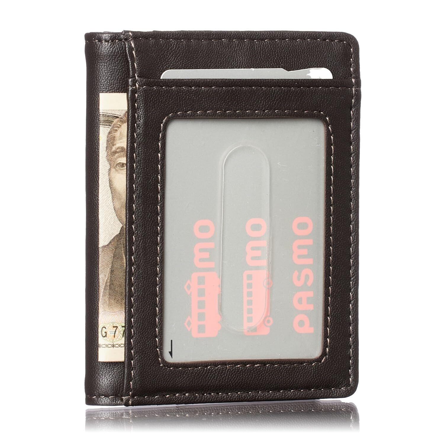 [Pregiudizio] メンズ 軽くて薄い イタリア製 ラム革 2面 パス入 定期入 (Brown ブラウン)