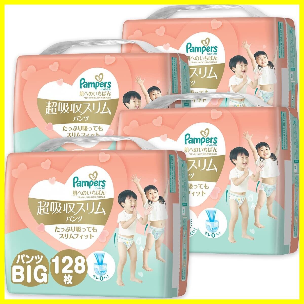 【パンツ ビッグサイズ】パンパース オムツ 肌へのいちばん 超吸収スリムパンツ (12~22kg) 128枚(32枚x4パック) [ケース品]