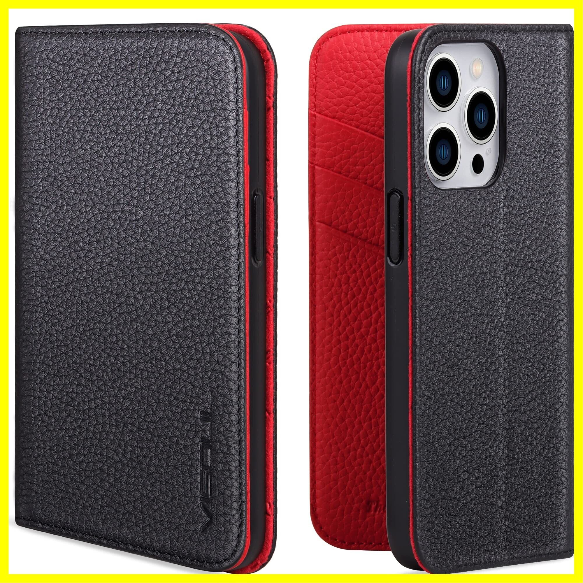 VISOUL iPhone 14 Pro ケース 手帳型 アイフォン14 Pro 手帳型 ケース 本革 レザー スマホケース カード収納 携帯ケース 全面保護 マグネット 横置きスタンド機能付き 柔軟なTPU素材 落下防止 iPhone 14 Proケース アイフォン14 Pro ケース 対応 6.1インチ iphone 14 Pro レッド