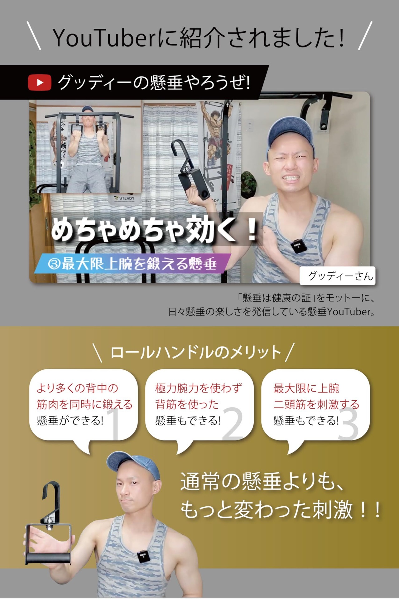 TEDDY WORKS 日本製 ロールハンドル 2個セット 筋トレ器具 筋トレマシン 筋トレ 家トレ 懸垂 チンニング シーリングマウント 金属