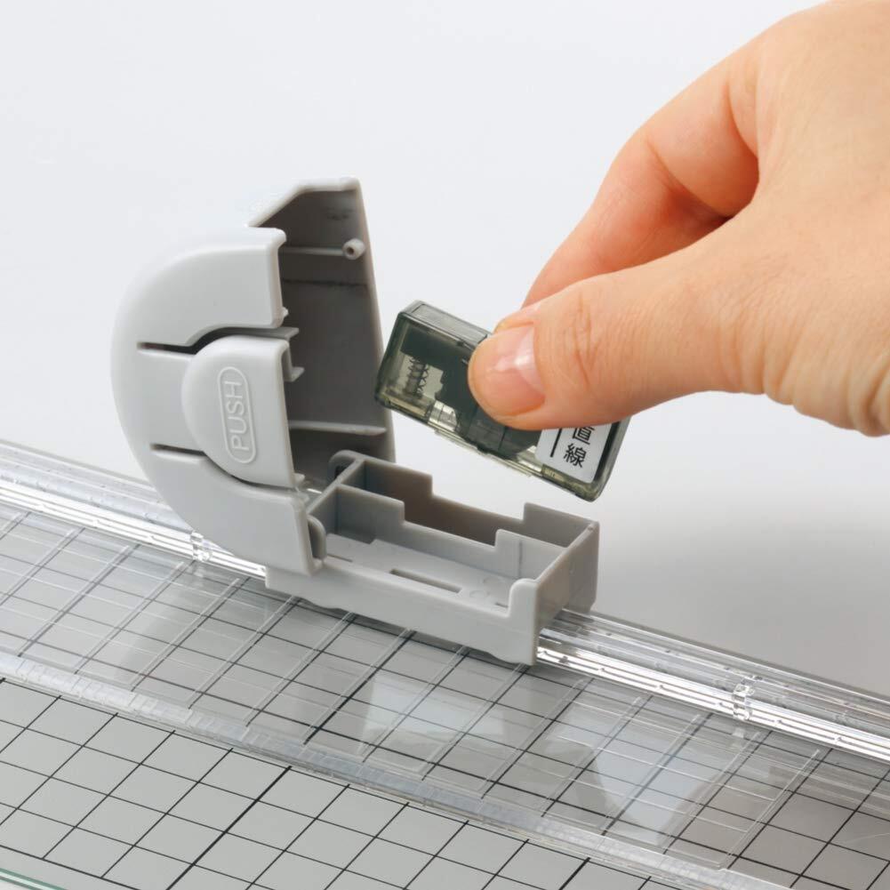 刃はベースに沿って可動するので切りたい位置で裁断できます。