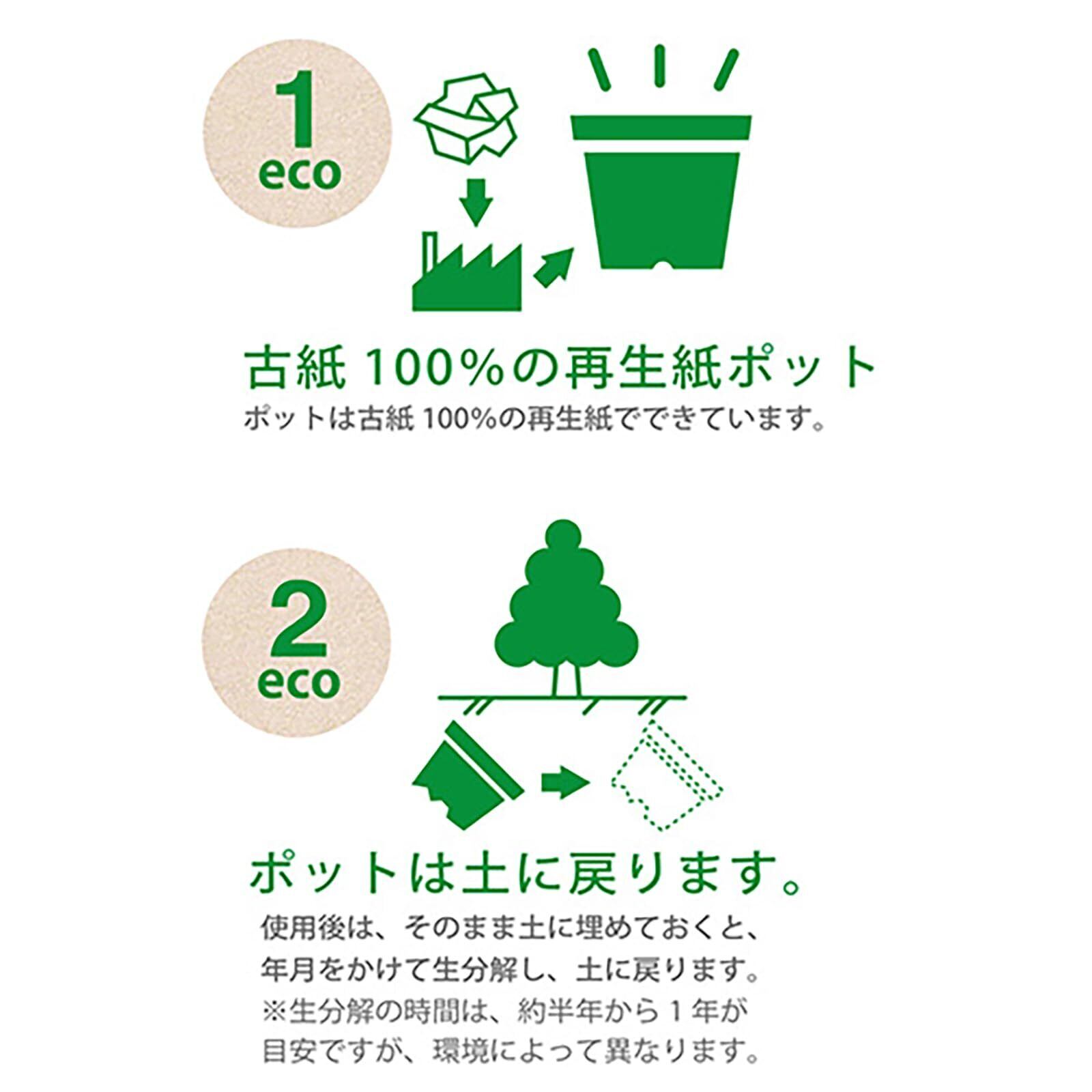 容器は古紙100%の再生紙で国内で作られており、使用後生分解し土に還ります