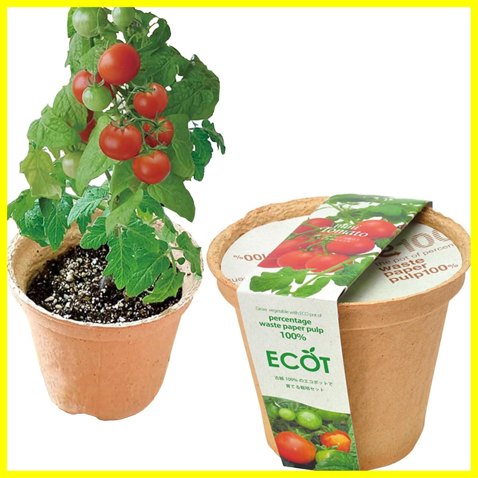聖新陶芸 冬 / 春 / 夏の 家庭菜園 簡単 栽培キット ゆったり育てる ミニトマト 野菜 栽培セット ( 自由研究 / 食育 ) M 鉢の径14cm エコット 母の日 プレゼント 誕生日 GD-41109