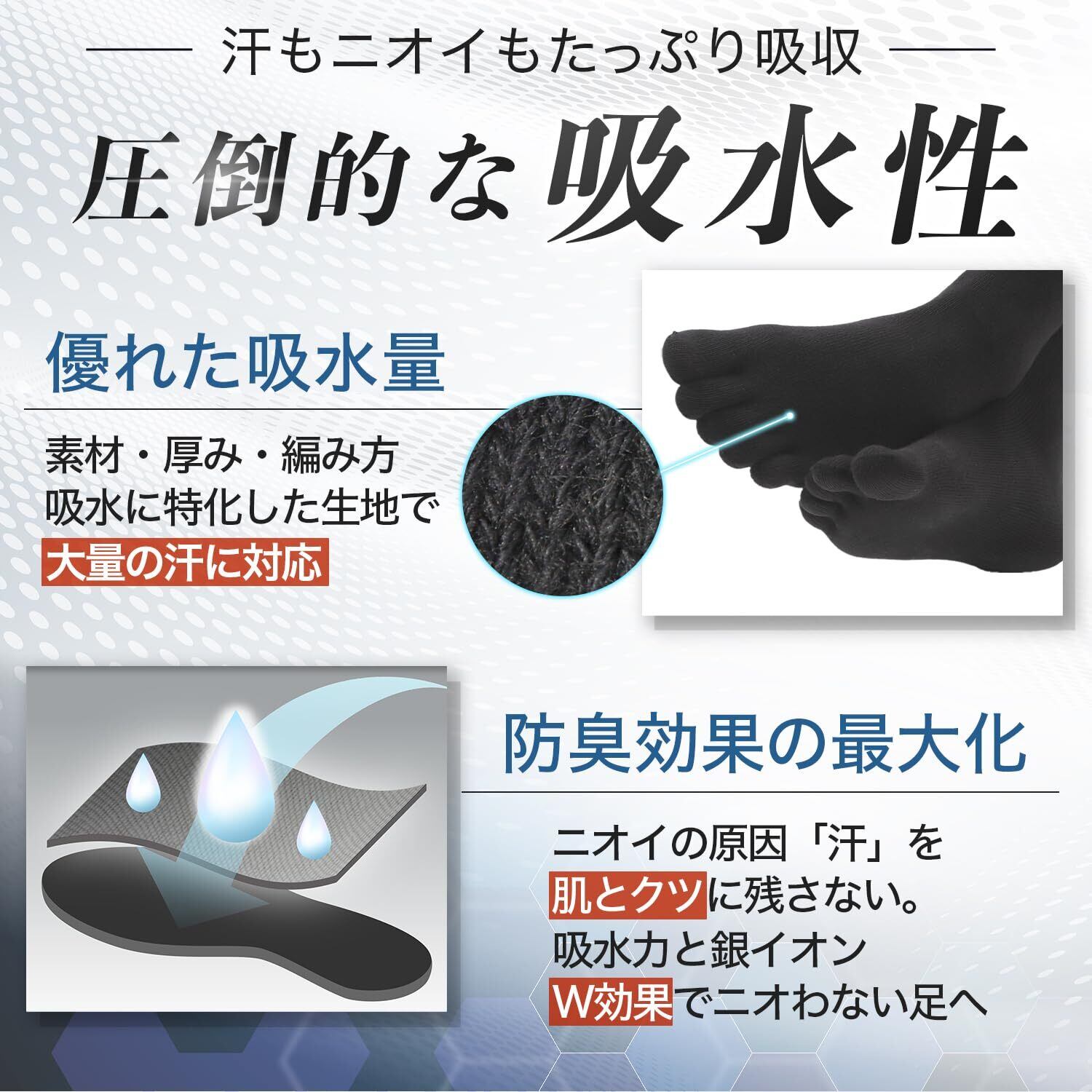 [Lacalm Feet] 5本指ソックス メンズ 汗っかき用防臭 多汗症 中厚手 吸水 ビジネス 綿 銀イオン 長持ち 3足セット