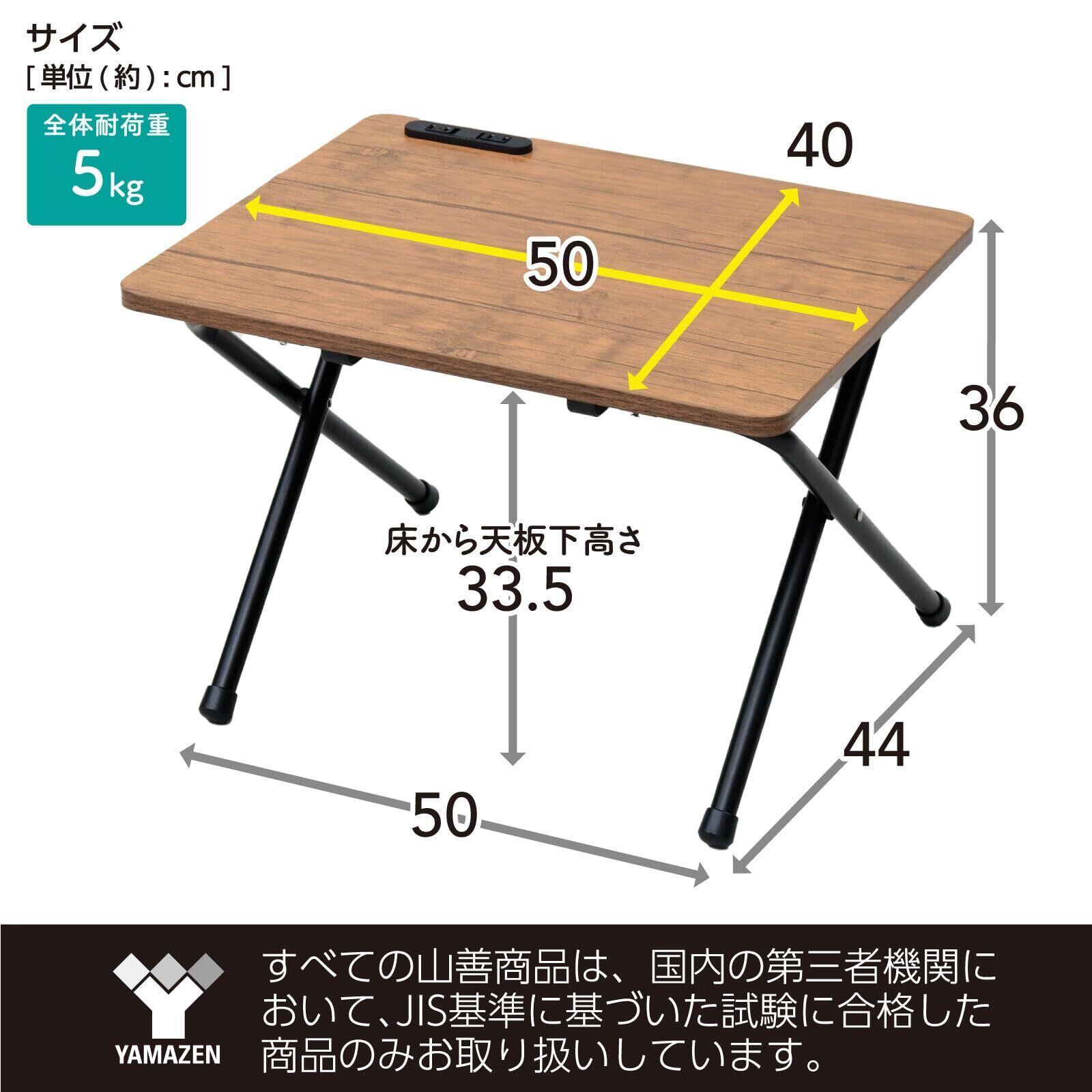 山善(YAMAZEN) テーブル ローテーブル (ミニ/折りたたみ/コンセント付き) 完成品 幅50×奥行44×高さ36cm 一人暮らし ウッドナチュラル/ホワイト EYST-5040L(WN/WH2)