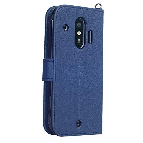 wisers らくらくスマートフォン F-42A / me F-01L 対応 手帳型スマホケース (ダークブルー) 着脱しやすい (カードホルダー/スタンド機能付き) ストラップ 2種付き (ハンドストラップ/ネックストラップ)