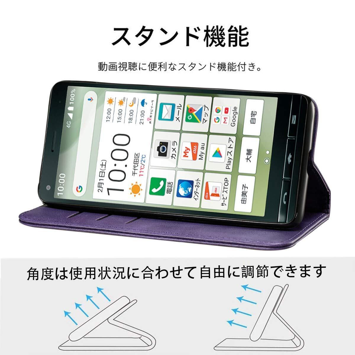 BASIO4 KYV47 ケース 手帳型 高質PUレザー BASIO4 KYV47 カバー KYOCERA BASIO 4 ケース 耐衝撃 内蔵マグネット開閉式 ベルトなし スマホケース おしゃれ カードポケット スタンド機能 便利 スプラット同梱 携帯ケース(パープル)