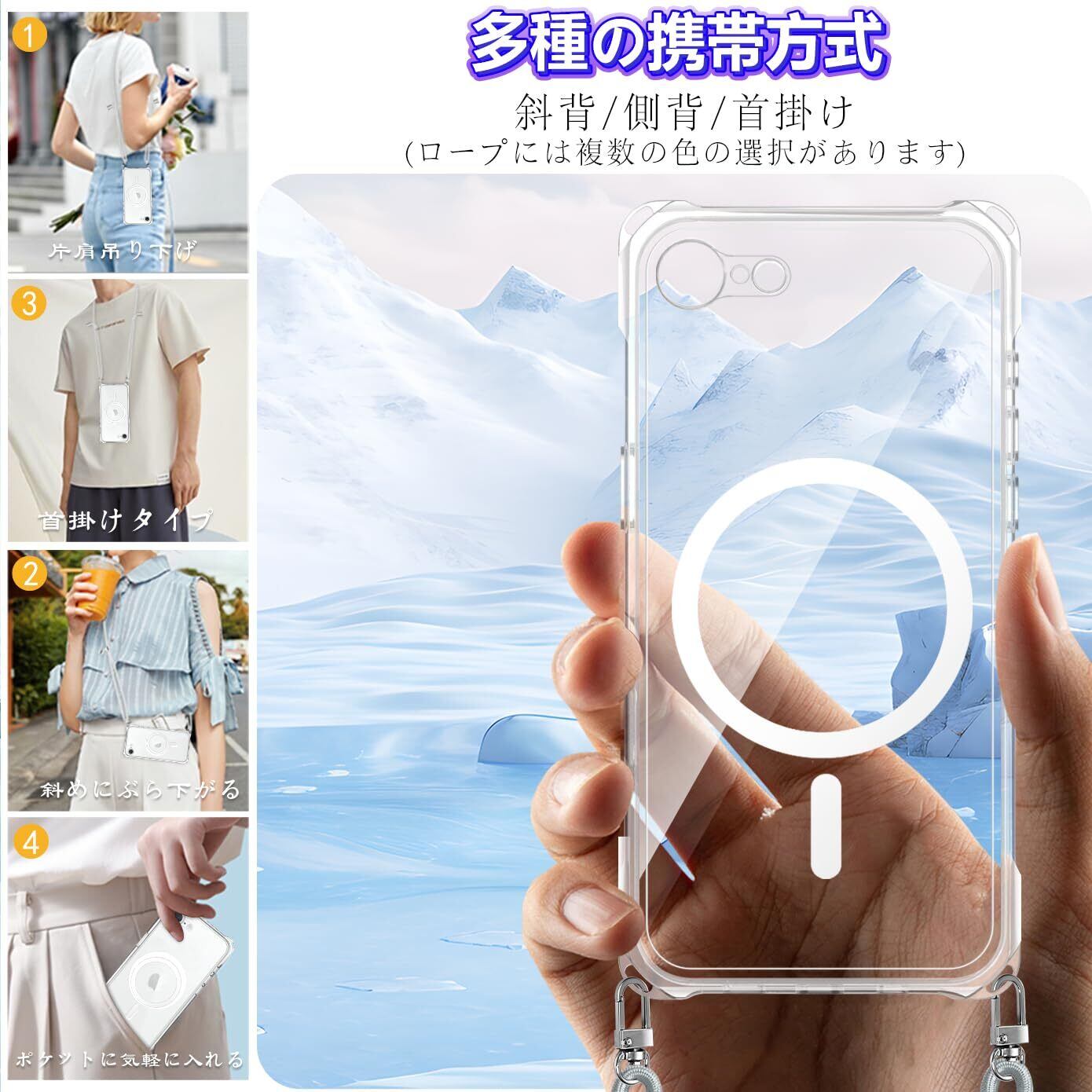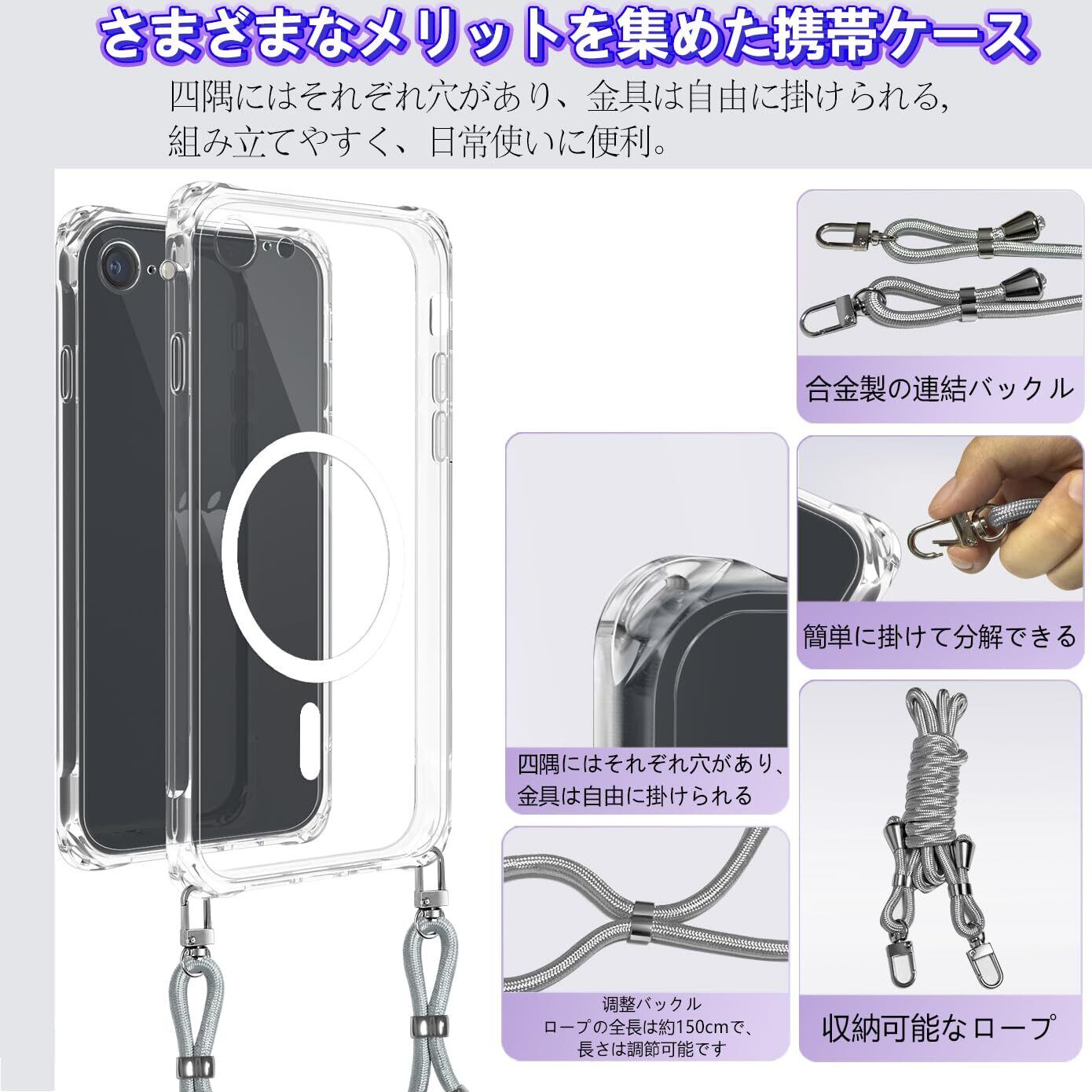 iPhone SE 第3世代 第2世代 用 ケース クリア ショルダー MagSafe対応 アイフォン7/8/se2/se3 スマホケース iphone 8/7 カバー 肩掛け 斜めかけ 縄掛けケース 透明 TPU 携帯ケース 紐付き 織りストラップ付き 長さ調整可能 取り外し可能 紛失防止 落下防止 ワイヤレス充電対応(シルバー)
