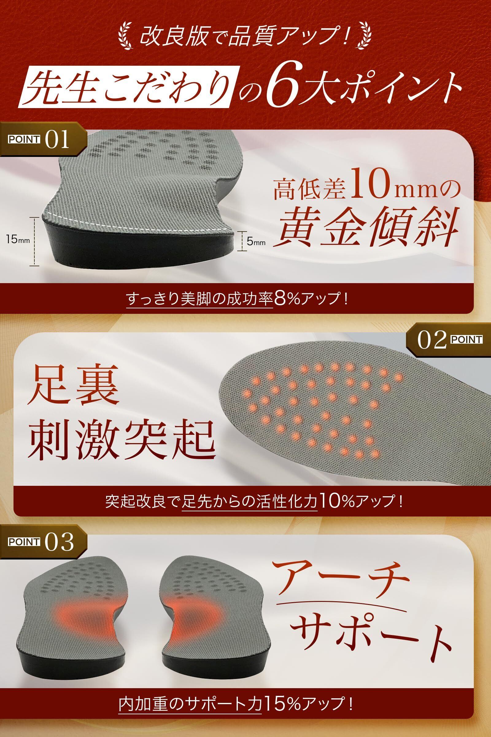 【O脚矯正に特化】O脚矯正1本に絞り日本で企画開発された唯一のO脚矯正インソールです。日本人に合った無理のない傾斜ラインを実現しました!歩き方のくせや運動中の横Gにより、いつの間にか崩れた脚のラインを美脚・美尻に導きます!