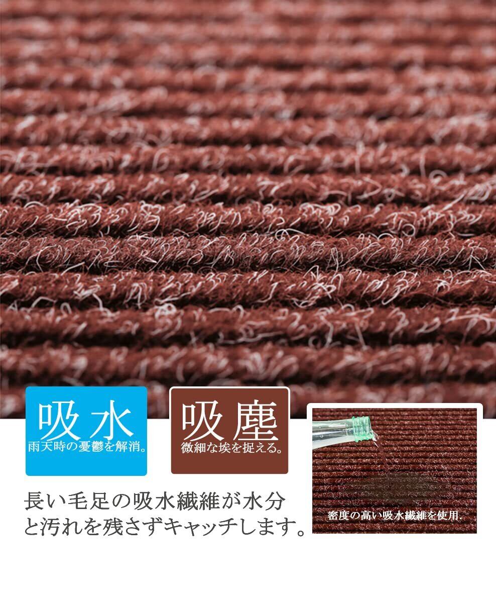 【泥落とし、吸水】屋内、屋外でお使いいただける玄関マットです。表面の凸凹が屋内に持ち込みたくないホコリ汚れや水などをしっかり捕らえ、吸収する機能的なマットです。長い梅雨の日でも大雪の日の中でもフロア汚れを最小限に抑えます!また、マットが抗菌性・防臭性、一年中も快適にご使用いただけます