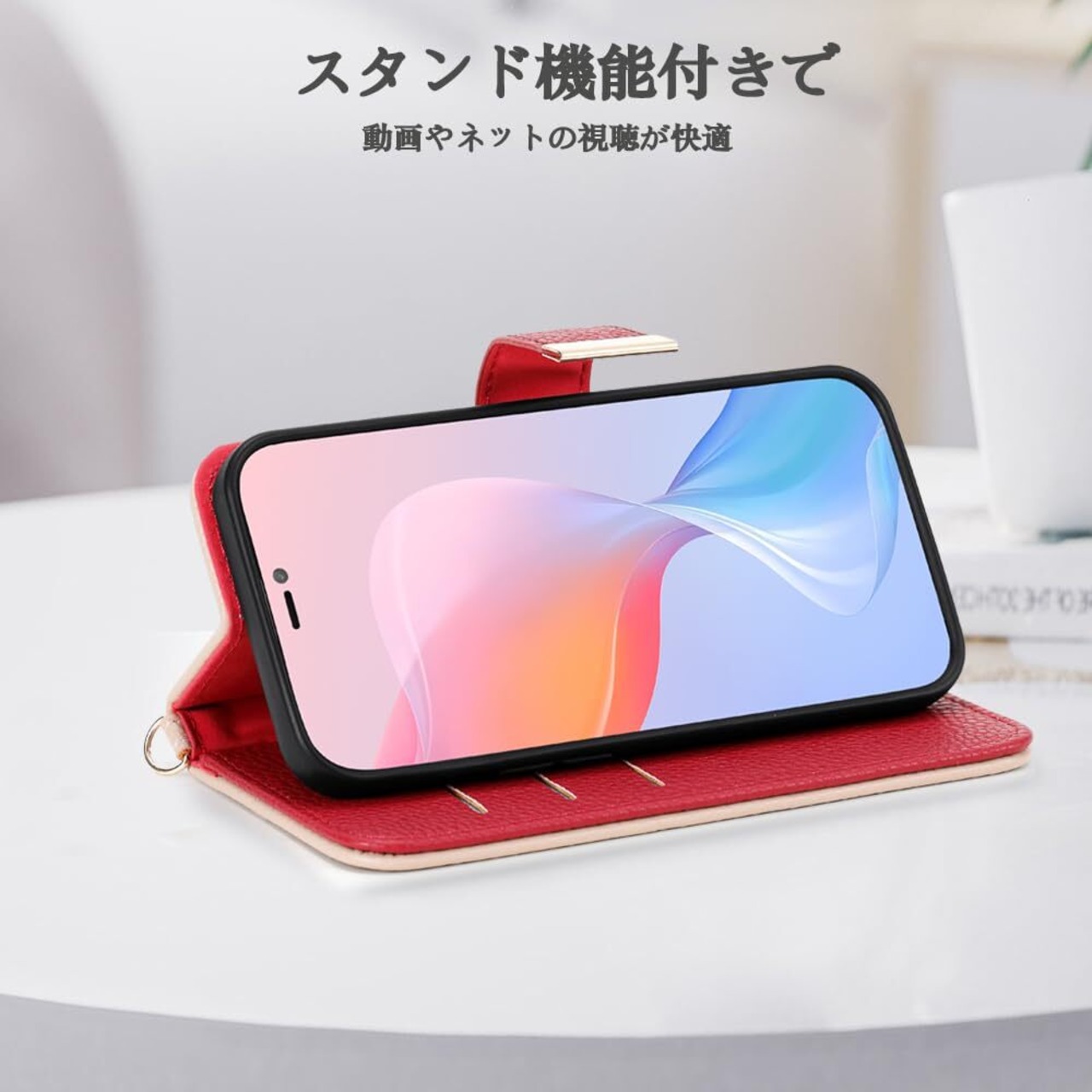 【実用性】カード収納:内側には4つのポケット付き、カードや駐車券などを収納しておくことができます。横置きスタンド機能: 横向きにスタンドすることが出来るので、スマホでの動画視聴や映画鑑賞にも便利です。ストラップ付き:犬の散歩の時、買い物の時にサッと携帯を使用できます。