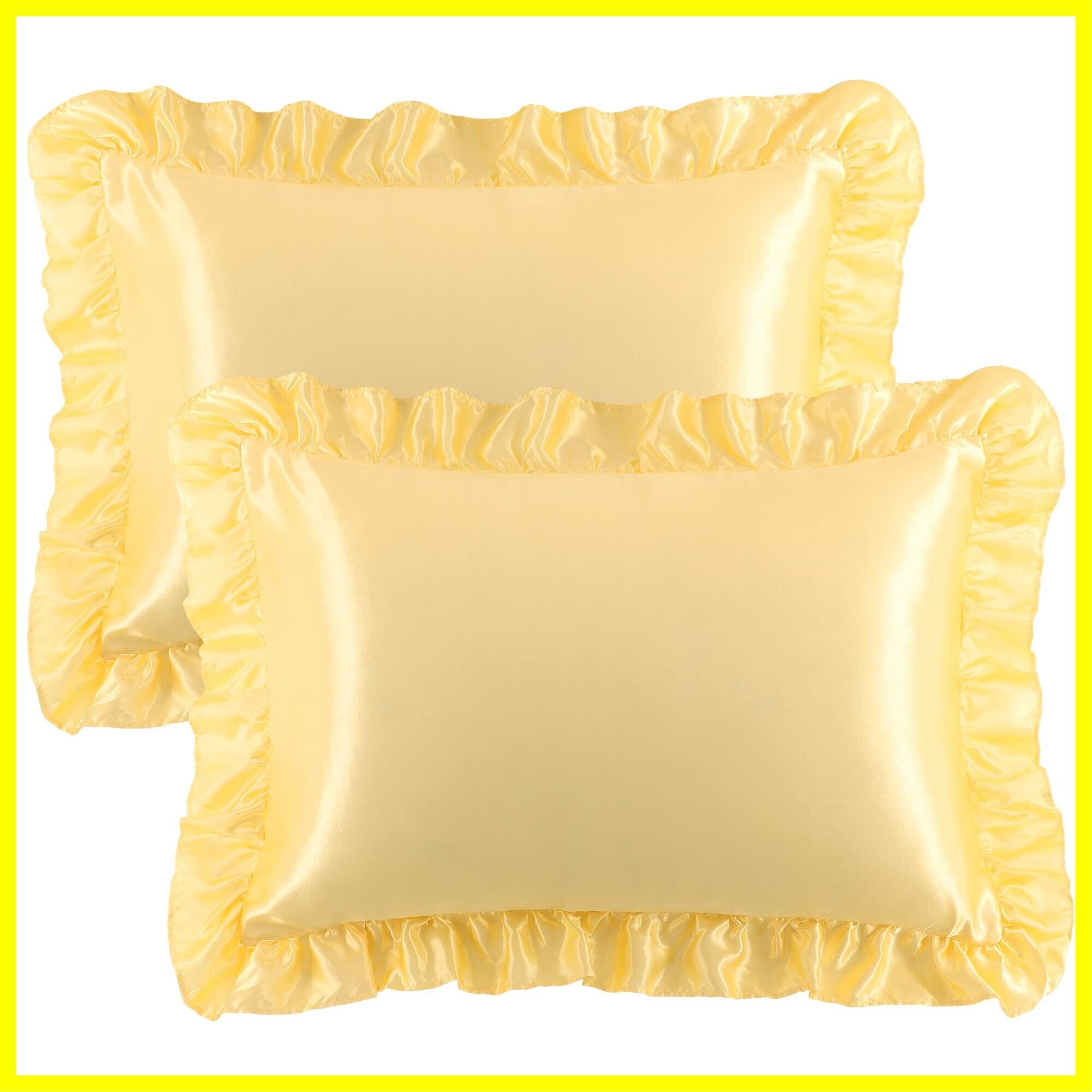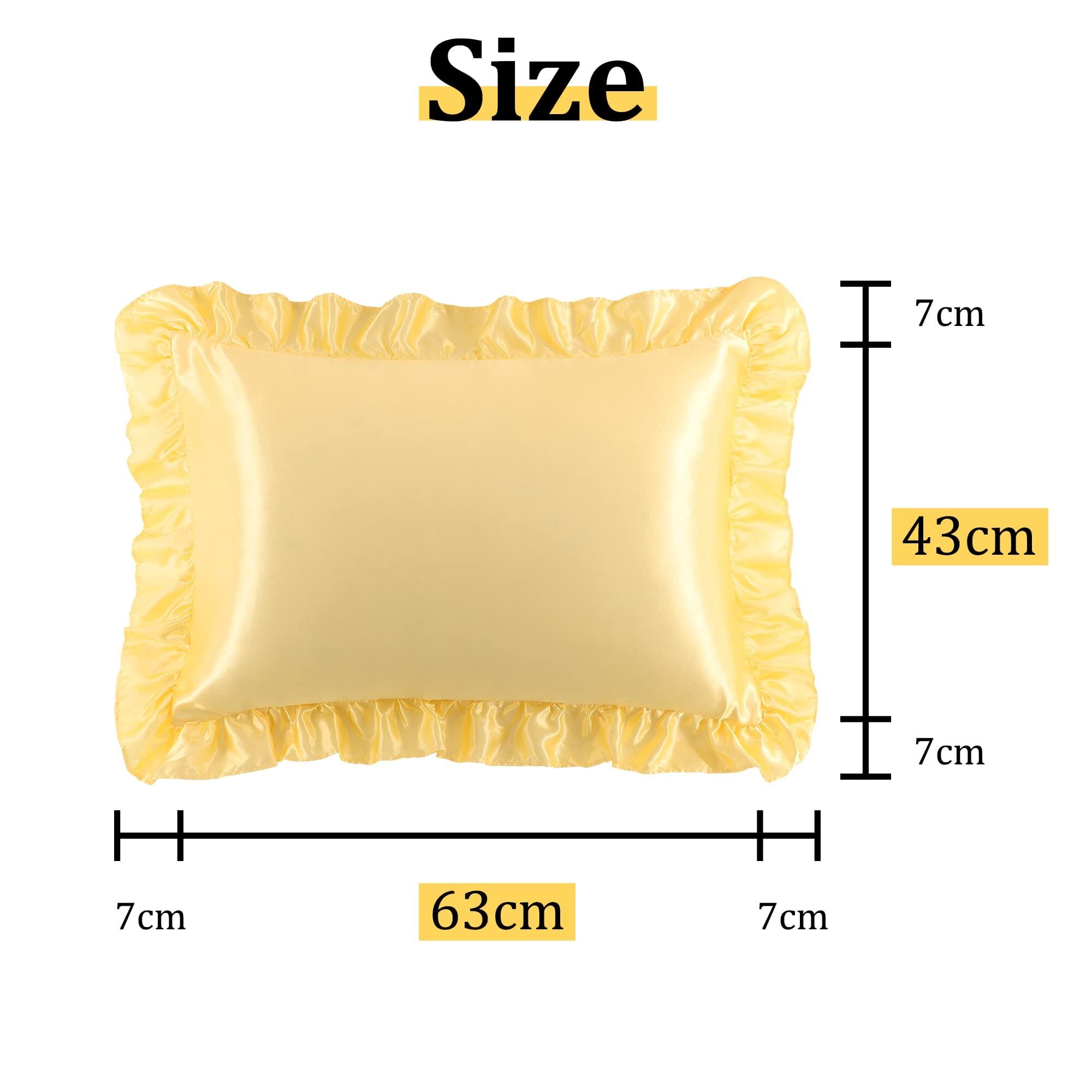 PiccoCasa 枕カバー 2枚セット サテンの枕カバー フリル 封筒式 冬 シルクのような肌触り まくらカバー ピローケース 美肌 美髪 つるつる クリスマス イエロー 43*63cm