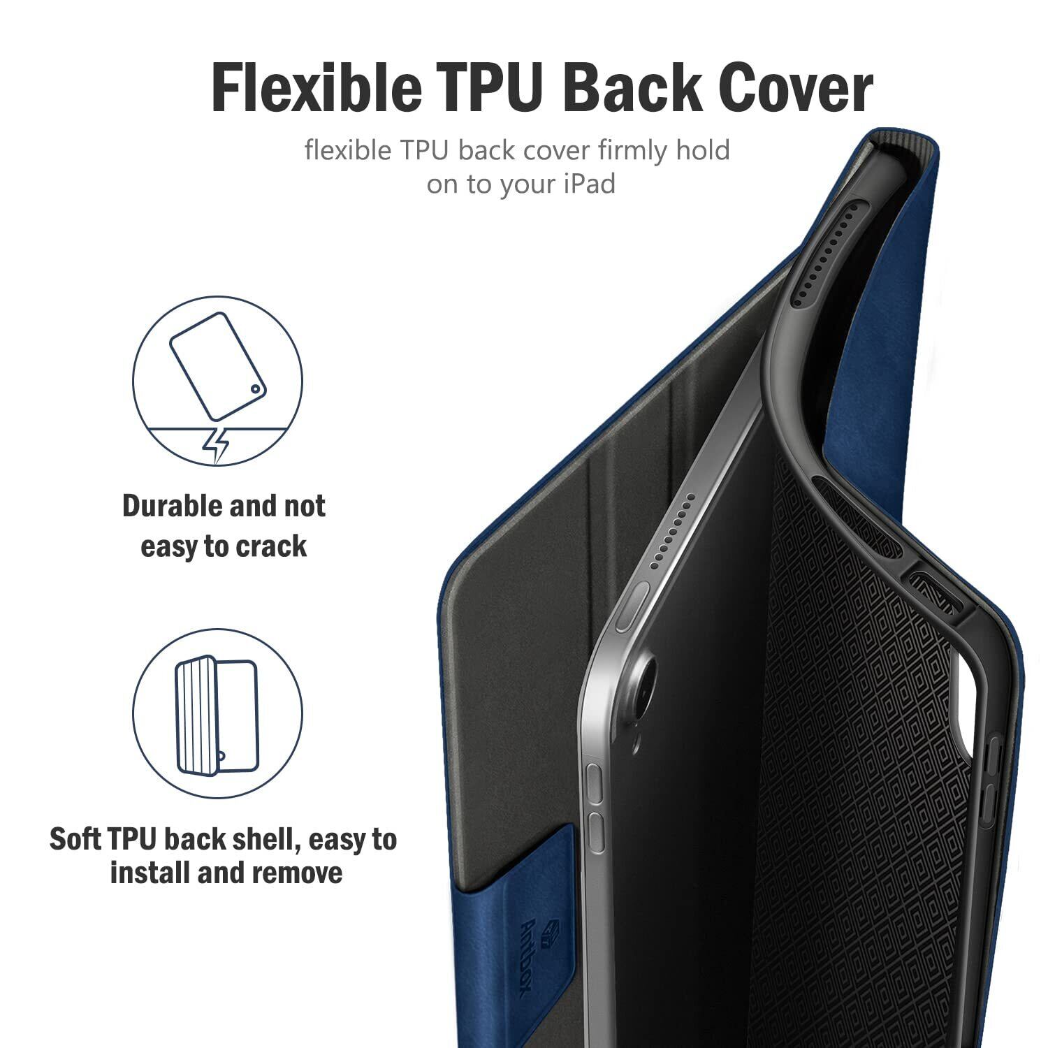 Antbox iPad 第11世代 ケース(A16) 第10世代 ケース 10.9インチ 高級ソフトPUレザー製 ひび割れ防止 耐衝撃 アップルペンシル収納可 オートスリープ&スタンド機能付き 全面保護 (ブルー)