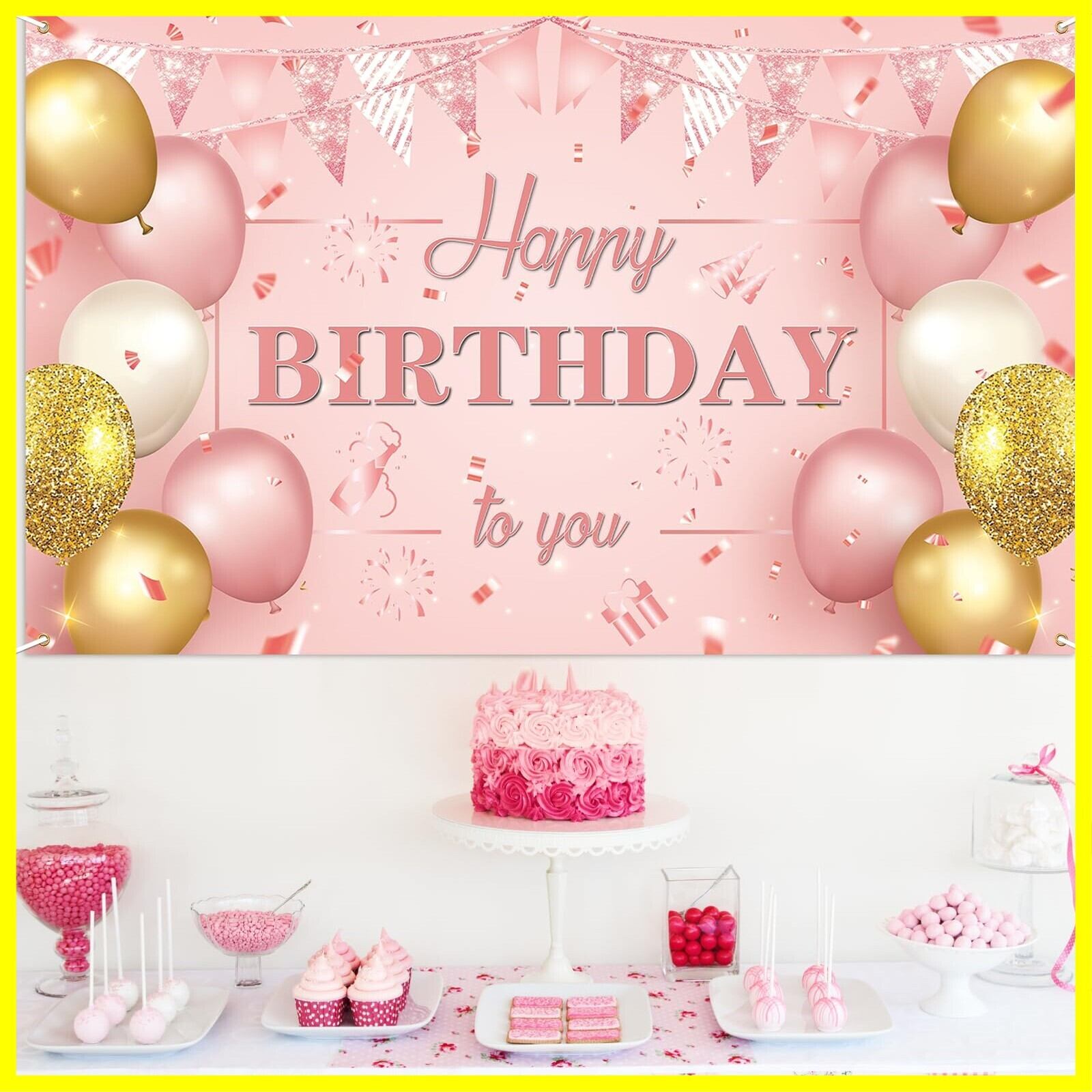 Paready バースデー タペストリー 誕生日 飾り付け 壁掛け 大判 フォトポスター 写真背景 壁飾り Happy Birthday パーティー 飾り おうちスタジオ シンプル おしゃれ 装飾 大人 女の子 ローズピンク