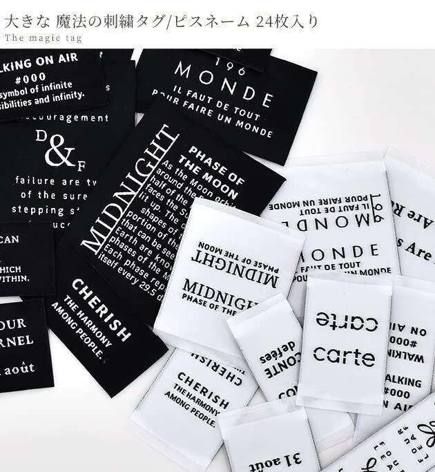 MYmama 大きな 魔法の モノトーン 刺繍タグ 24枚入り タグ ワッペン ハンドメイド用 手作り (刺繍タグ, ミックス)
