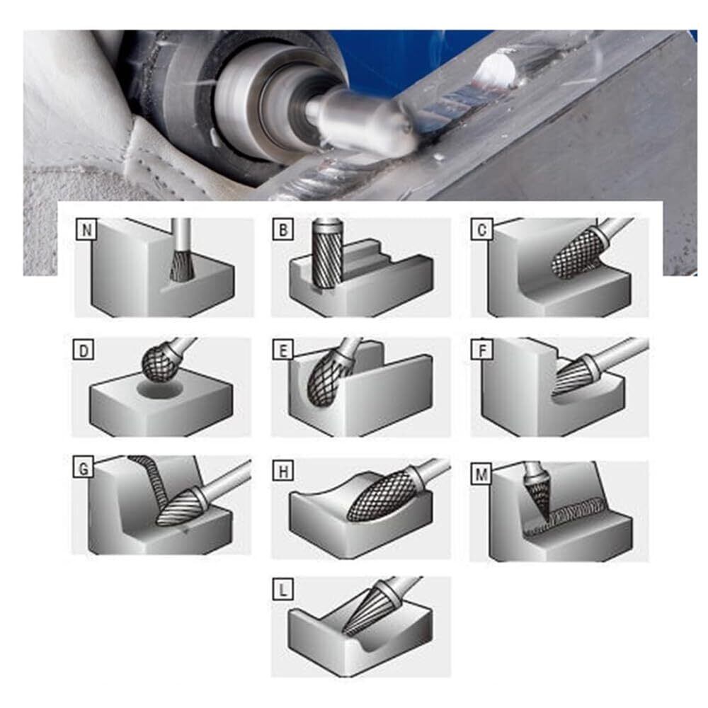 【製品仕様】全長約40~50mm、シャンク径3mm、ヘッド径6mm、材質:タングステン鋼。10種類の異なるヘッド形状を用途に応じて選択可能。 【タングステン鋼特性】金属(高硬度鋼材含む)及び非金属(大理石、翡翠、骨材等)の加工に適応。高度な研磨処理を施しており、金型の精密形状加工を実現。 【材料対応範囲】高硬度素材の切削加工が可能。鋳鉄・鋳鋼・炭素鋼・合金鋼・軸受鋼・ステンレス鋼・銅合金・アルミニウム・ニッケルクロム合金等の金属加工から、大理石・玉石・骨材等の非金属加工まで対応。 【応用分野】工芸品製作・金型キャビティ加工・複合材加工に広く活用。木材・アルミニウム・プラスチック等の軟質材加工に加え、エンジンポート研磨・溶接仕上げ・バリ取り作業等の金属表面処理にも適しています。鉄鋼材やステンレスの研磨作業にも有用です。 【注意事項】購入前には製品仕様のご確認をお願い致します。輸送中の外箱損傷が発生する可能性がありますが、製品機能に影響はありません。