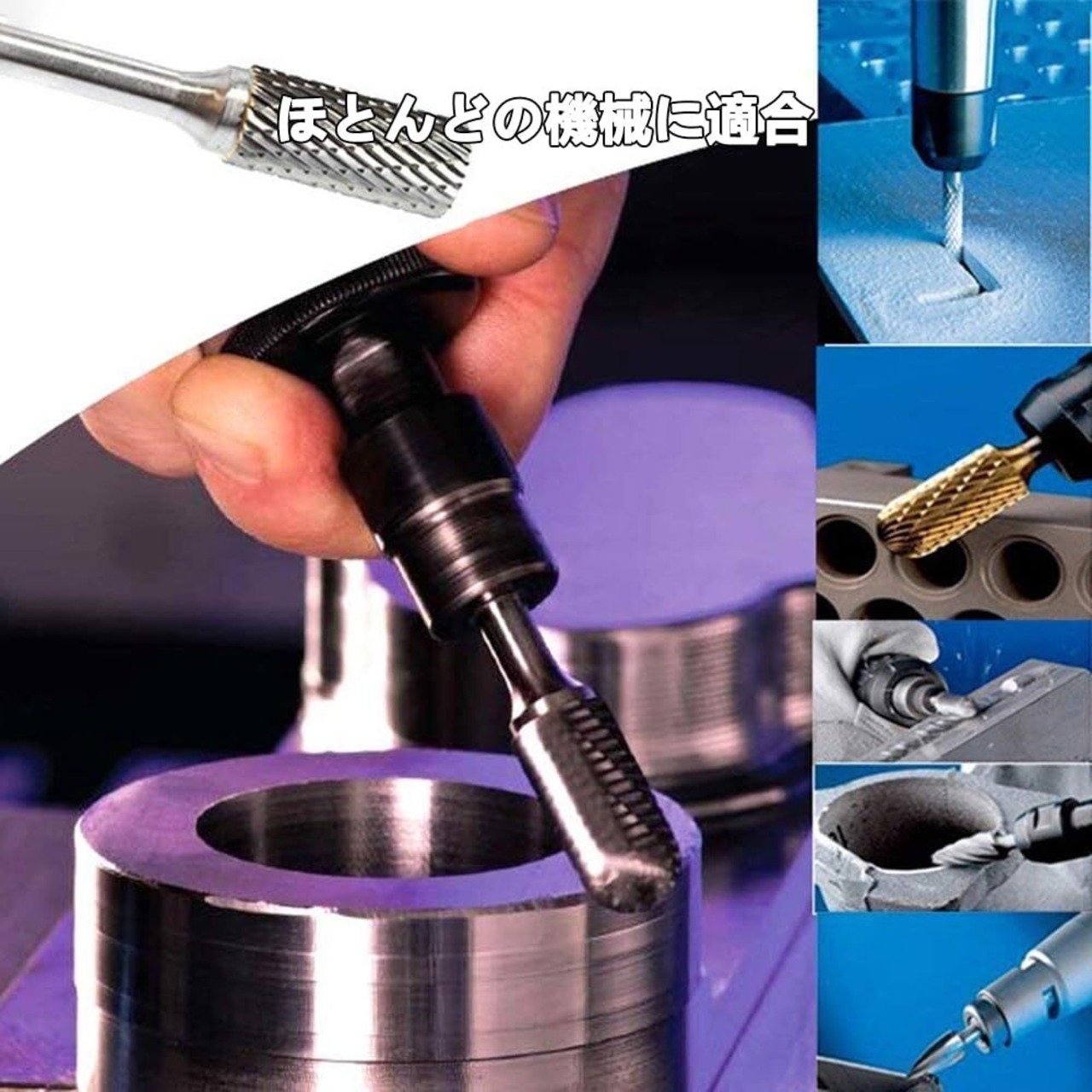 【応用分野】工芸品製作・金型キャビティ加工・複合材加工に広く活用。木材・アルミニウム・プラスチック等の軟質材加工に加え、エンジンポート研磨・溶接仕上げ・バリ取り作業等の金属表面処理にも適しています。鉄鋼材やステンレスの研磨作業にも有用です。
