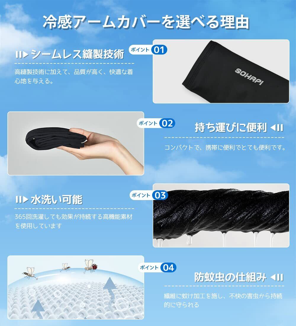 [SOHAPI] アームカバー 日焼け防止 レディース メンズ 【日本製】 夏 接触冷感−5℃ UPF50・UVカット率99.9% アームガード 腕カバー アームスリーブ ひんやり 紫外線対策 吸汗速乾 抗菌防臭 滑り止め 通気性 伸縮性 (両腕2枚組)