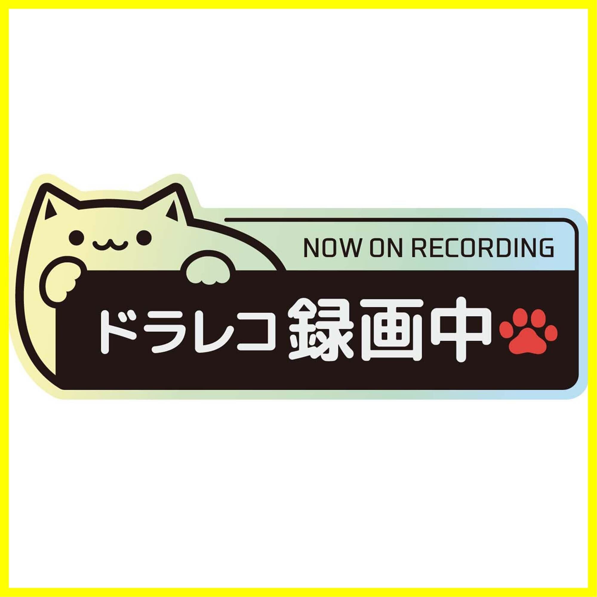 【反射】ステッカー ドラレコ搭載車 13×5.3cm ドライブレコーダー 録画中 あおり運転 猫 (反射 黄緑)